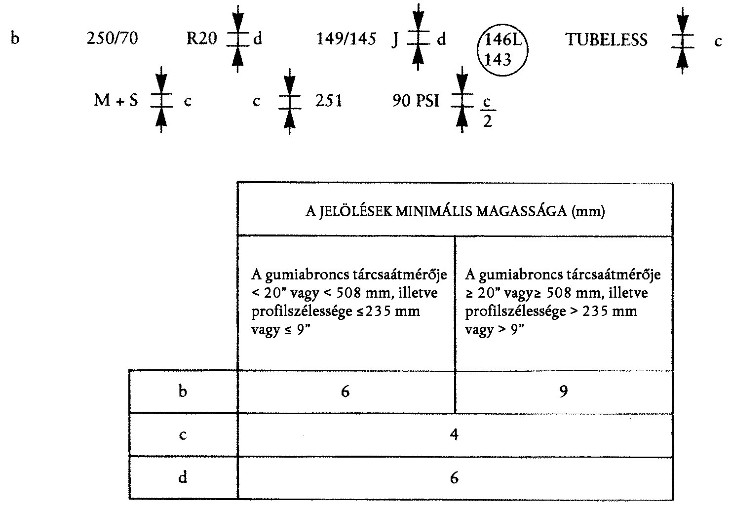 3. függelék | A gumiabroncs jelöléseinek elhelyezése |