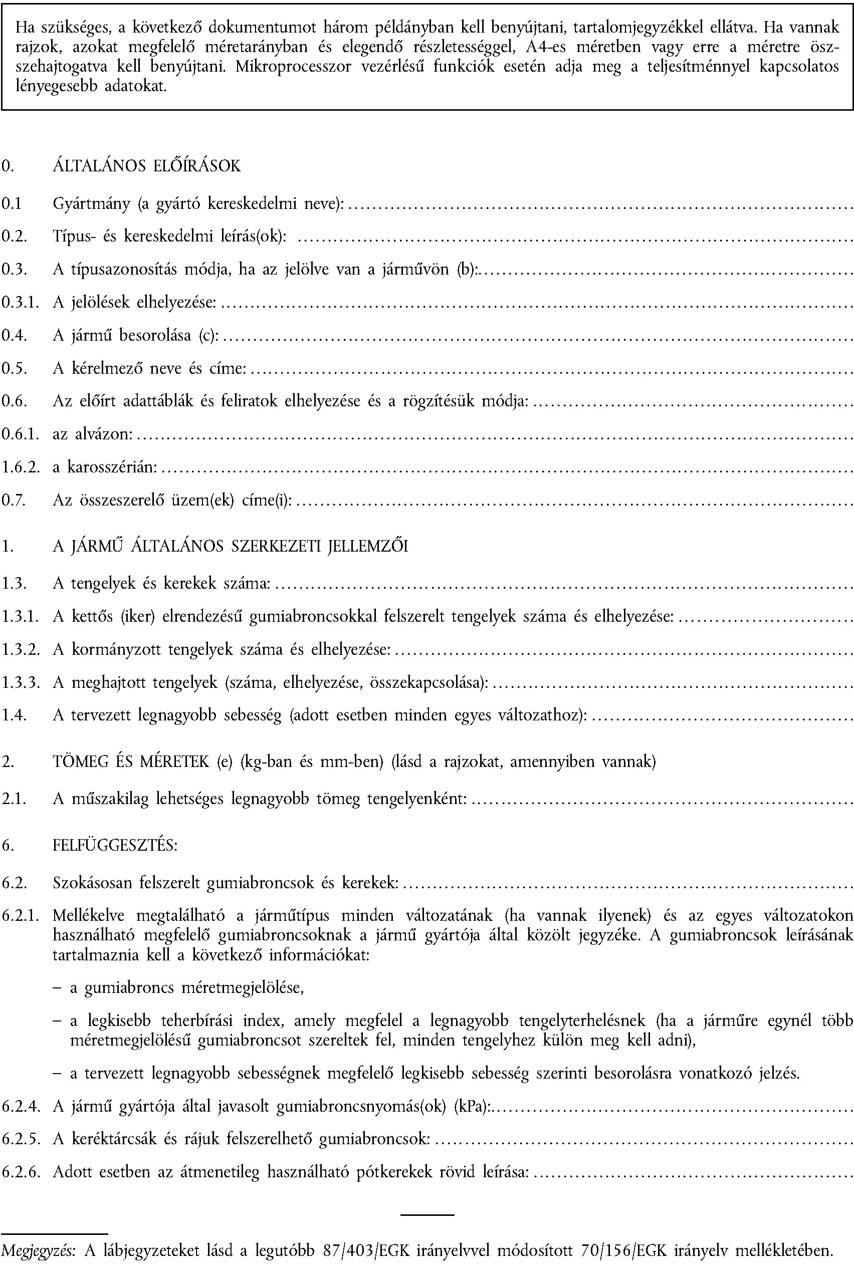 1.1. 1 A II. mellékletnek megfelelően benyújtott EK-típusjóváhagyási kérelmet az 1. függelékben meghatározott adatközlő lapoknak megfelelően elkészített, a gumiabroncs típusára vonatkozó hárompéldányos leírással együtt kell benyújtani.