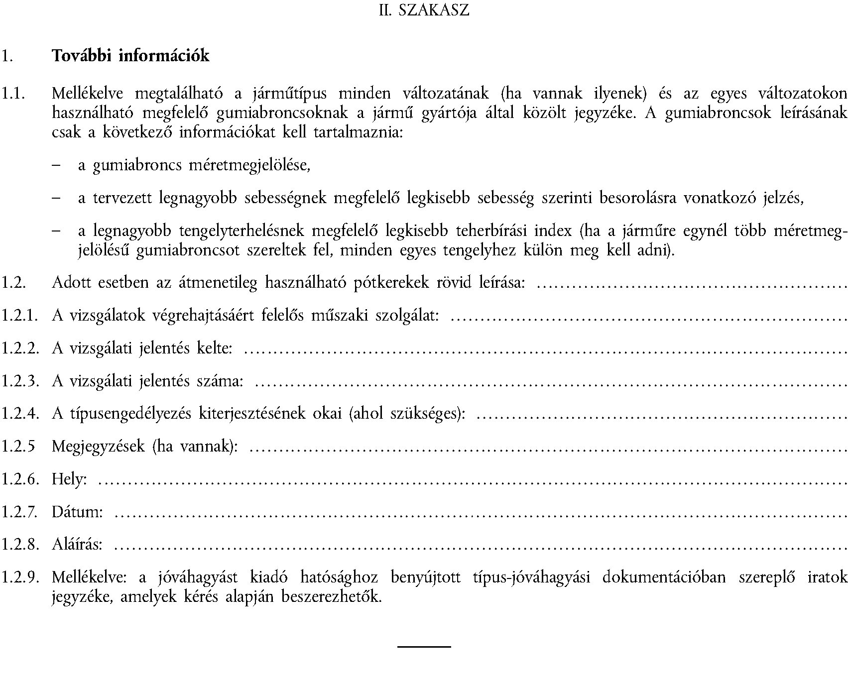 2. függelék | EK-típusbizonyítvány (gumiabroncsok) |