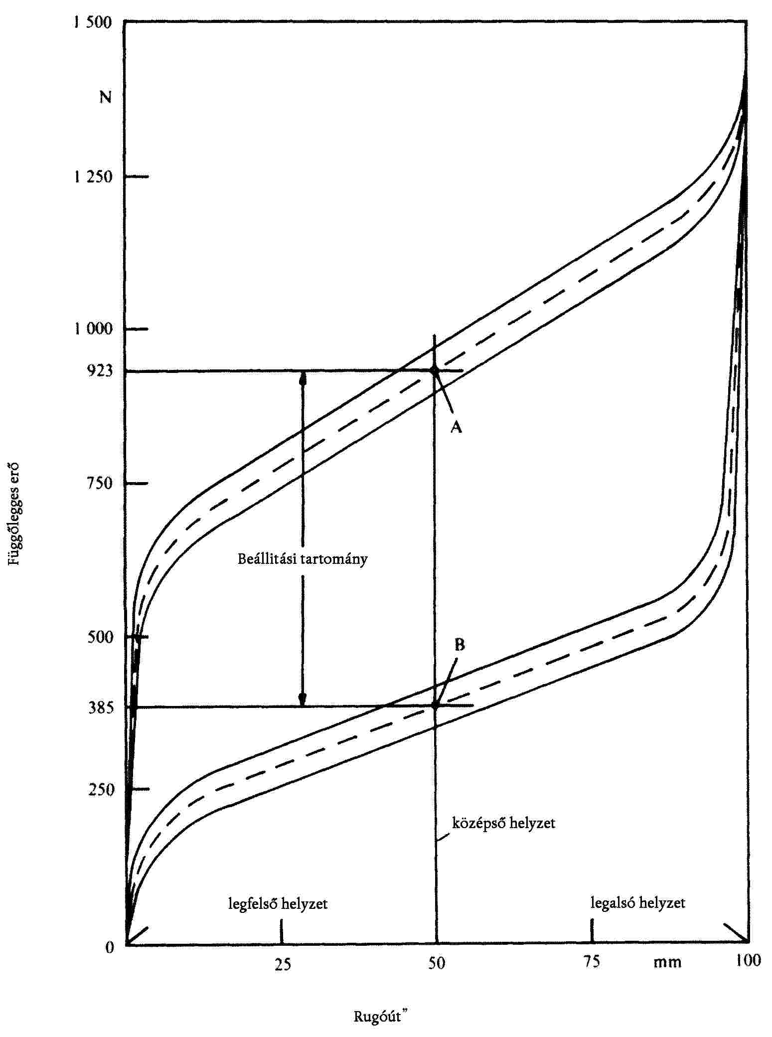 A rugókarakterisztika és a beállítási tartomány meghatározása (2.5.1. pont)