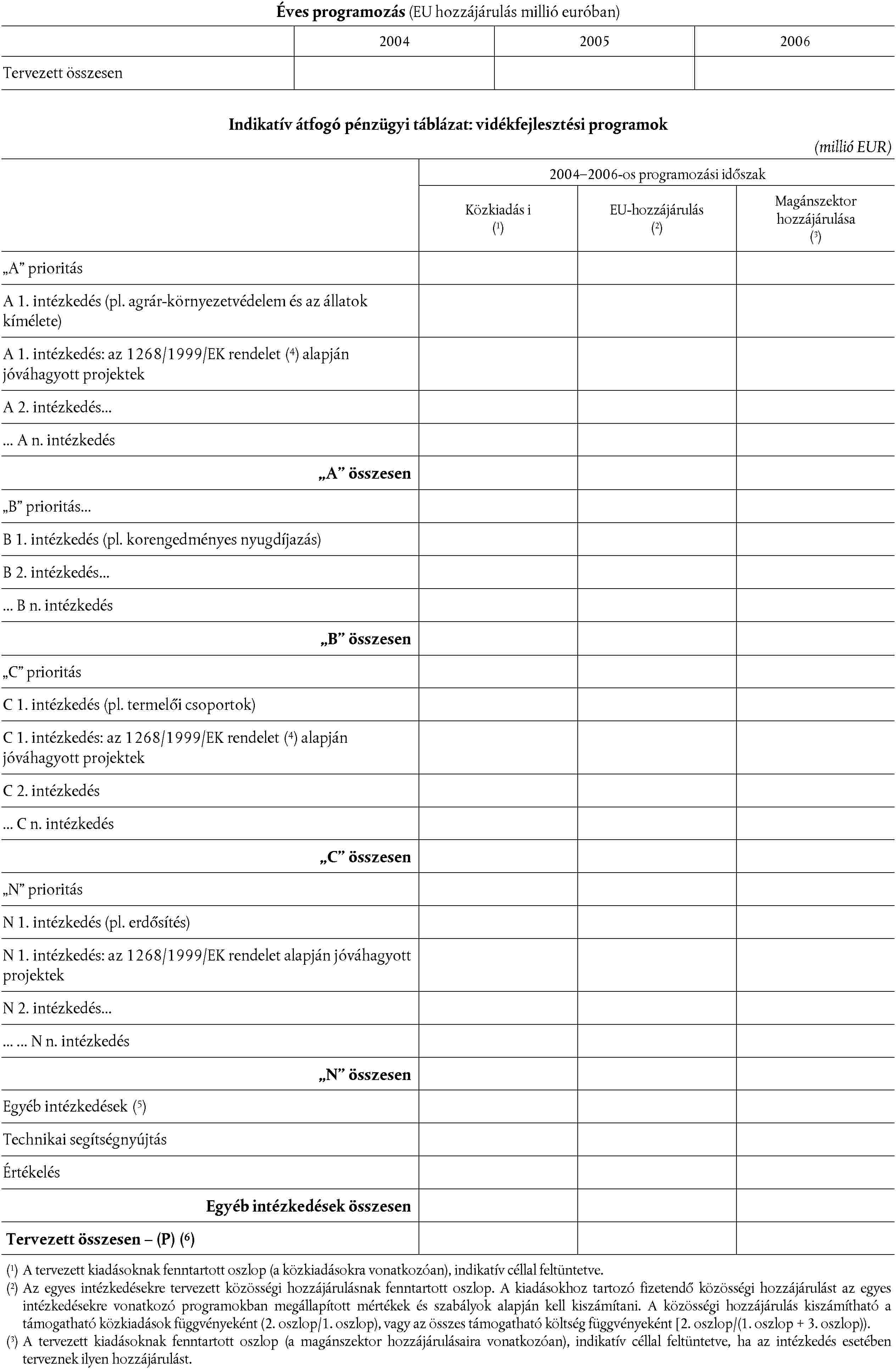 (1) A 445/2002/EK rendelet II. melléklete 8. pontjának alkalmazása céljából a tagállamok az e rendelet II. mellékletében szereplő indikatív átfogó pénzügyi táblázatot használják.