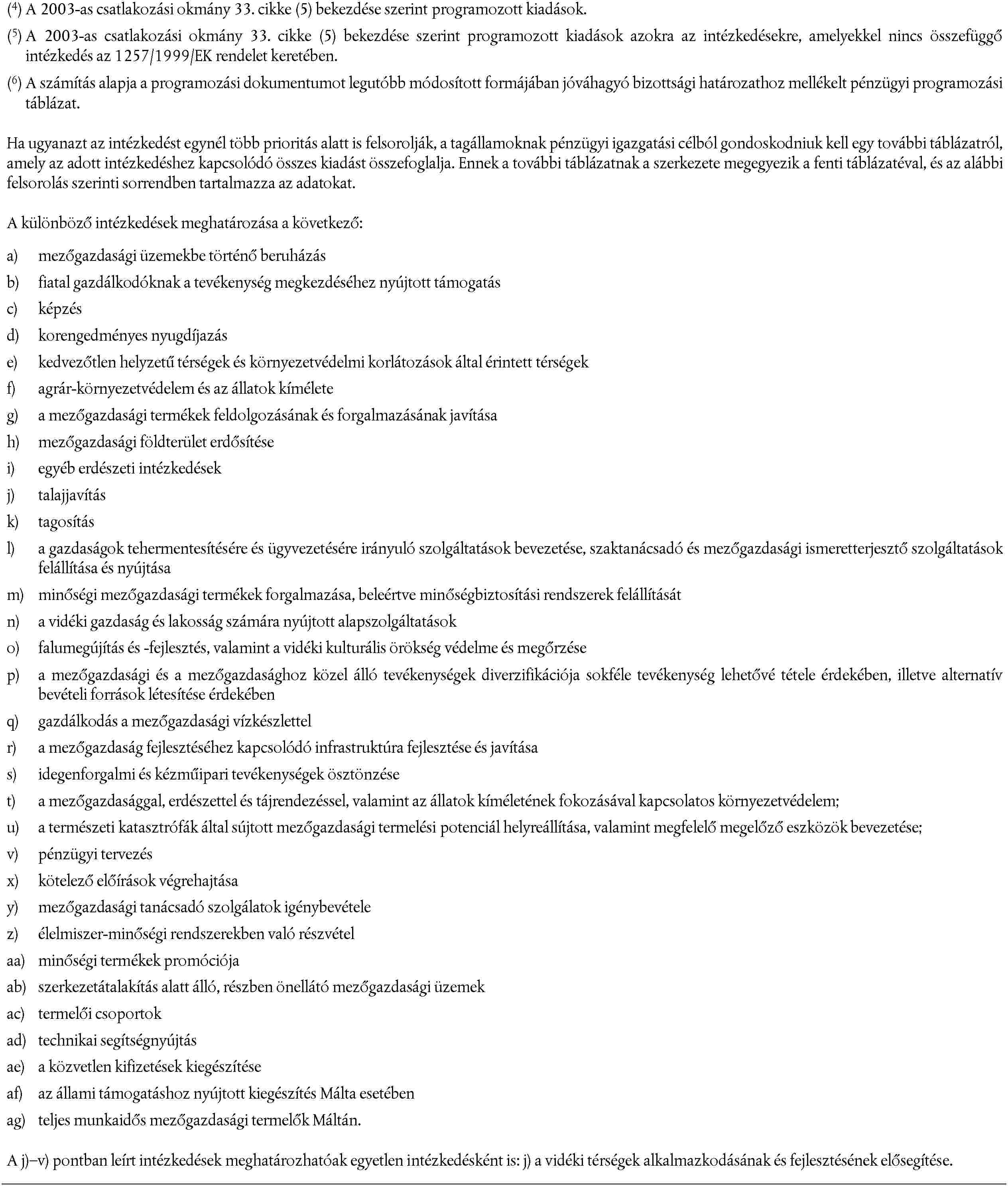 a) az 1257/1999/EK rendelet IXa. fejezetében előírt és a Cseh Köztársaságra, Észtországra, Ciprusra, Lettországra, Litvániára, Magyarországra, Máltára, Lengyelországra, Szlovéniára és Szlovákiára (a továbbiakban: az új tagállamok) vonatkozó külön vidékfejlesztési intézkedések;