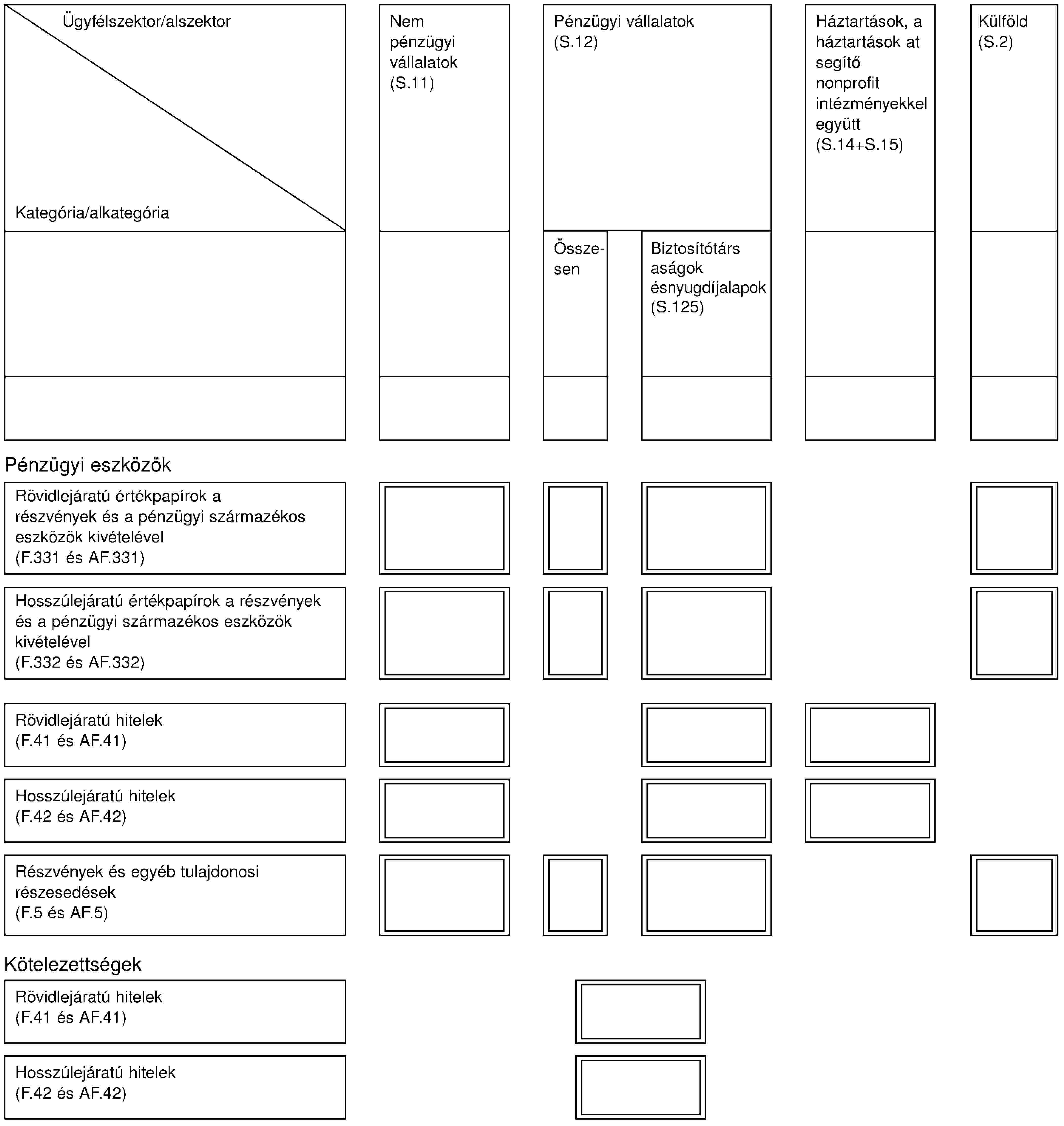 ( 9 ) Az ESA 95 szerinti kódok a következőket jelzik: S: szektorok/alszektorok; F: pénzügyi tranzakciók; és AF: a pénzügyi mérleg tételei.