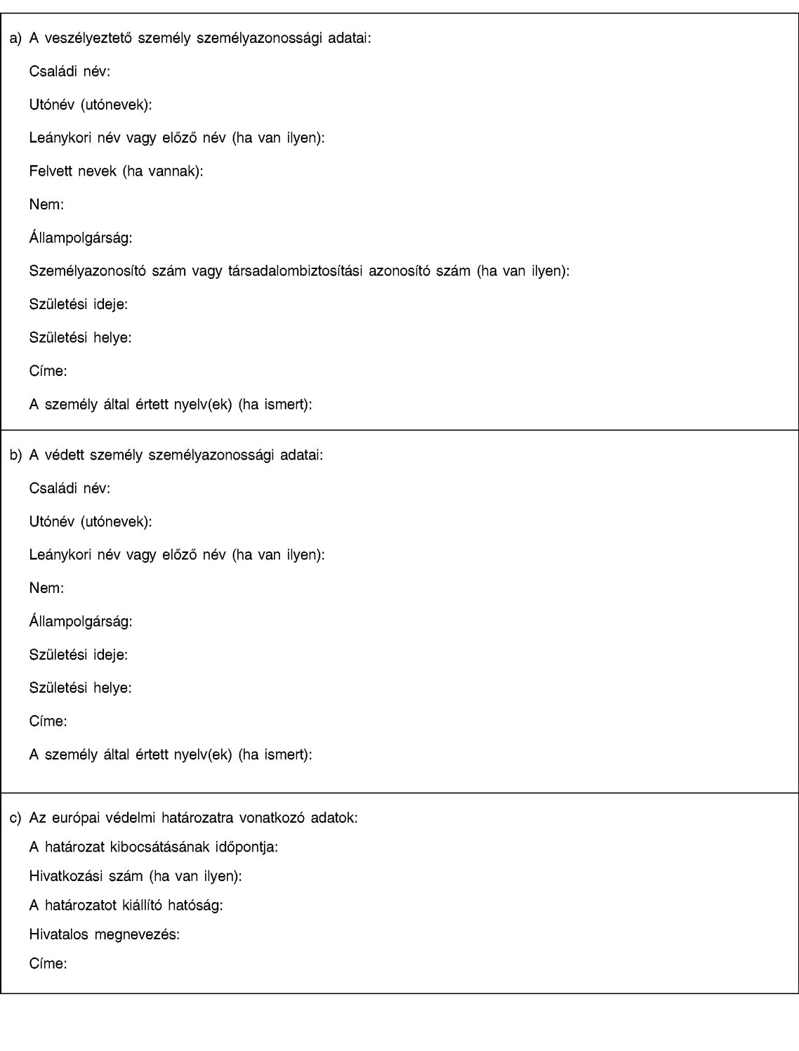 c) Az európai védelmi határozatra vonatkozó adatok: