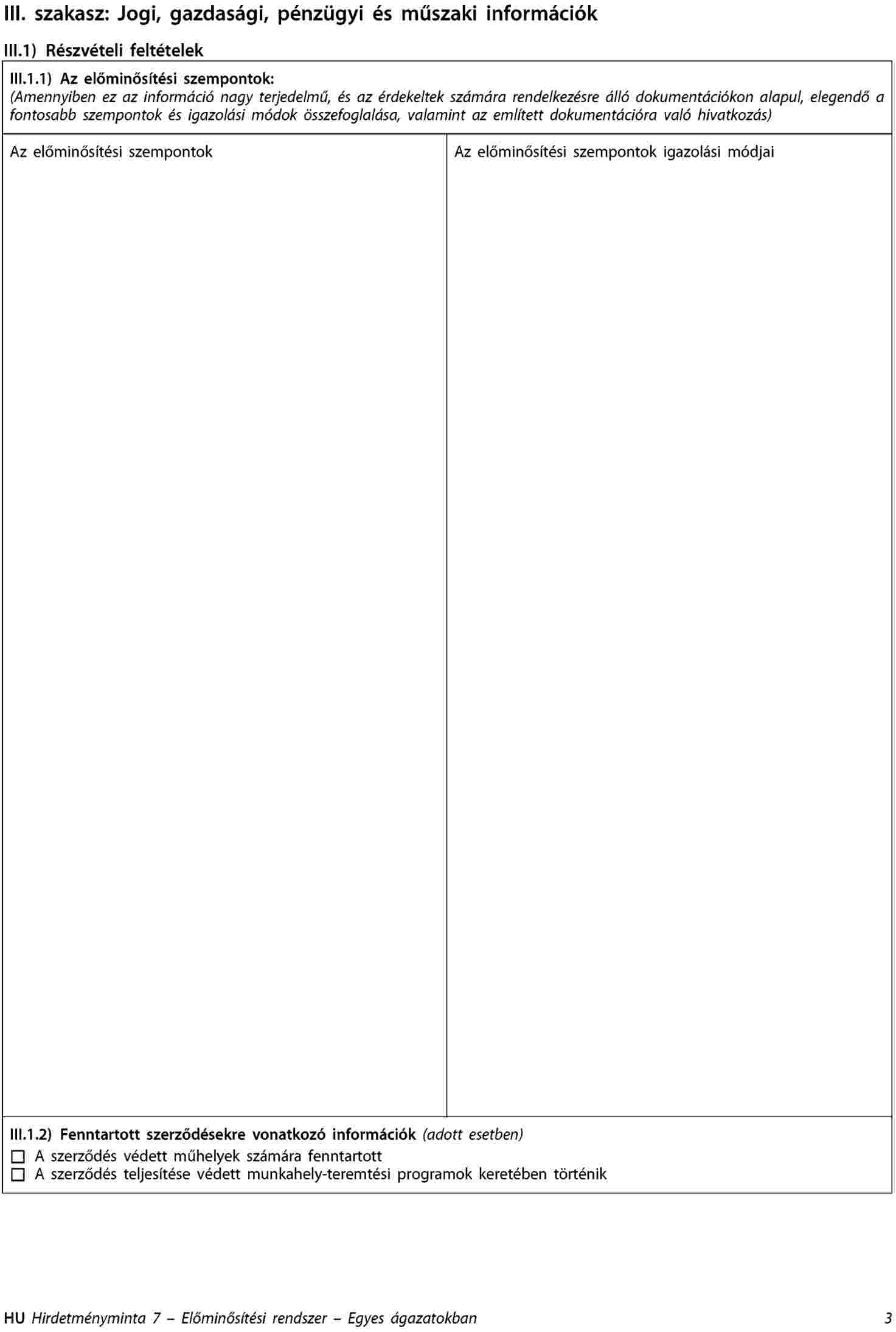 VII. melléklet: : 7. hirdetményminta : "Előminősítési rendszer - Egyes ágazatokban"