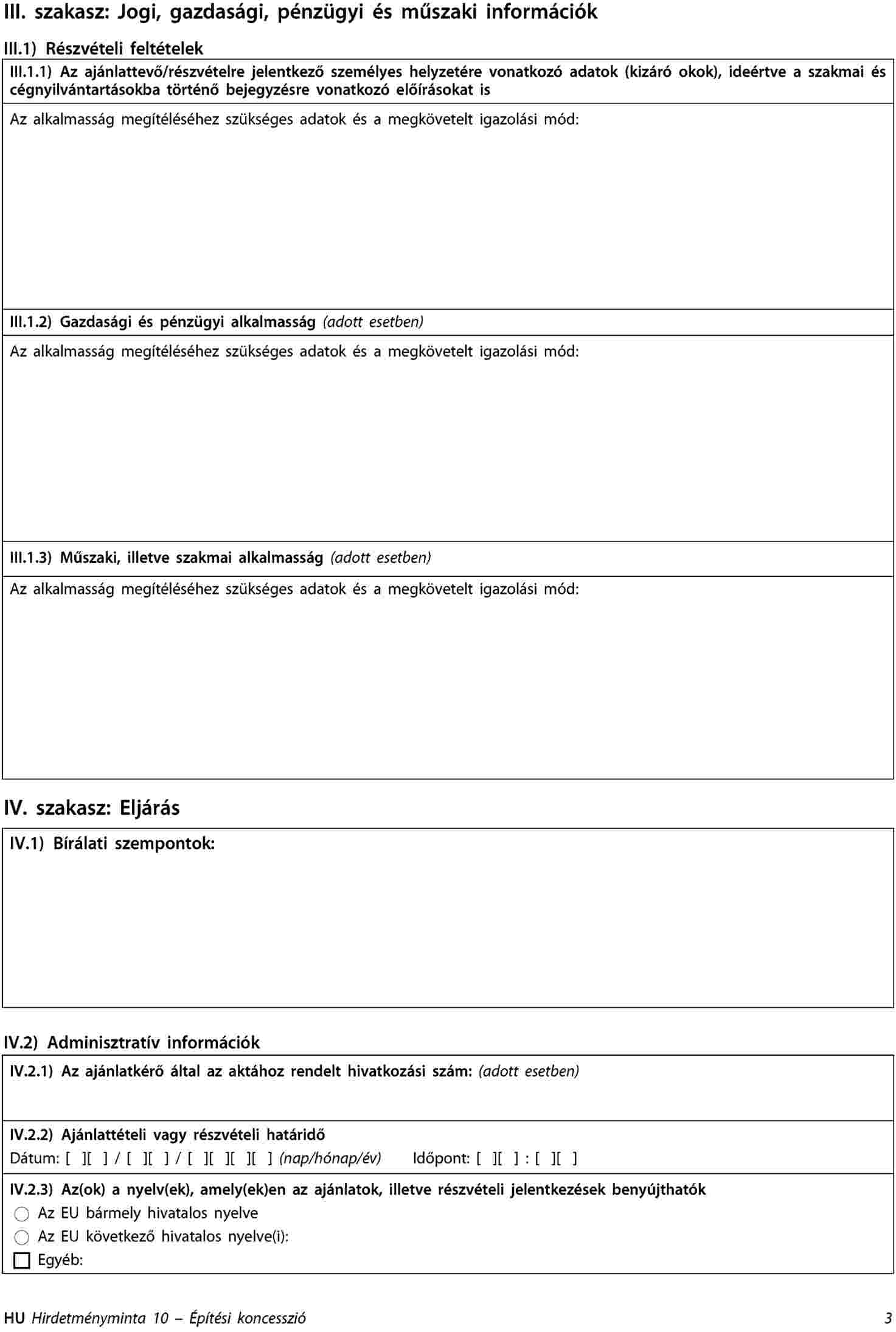 X. melléklet: : 10. hirdetményminta : "Építési koncesszió"