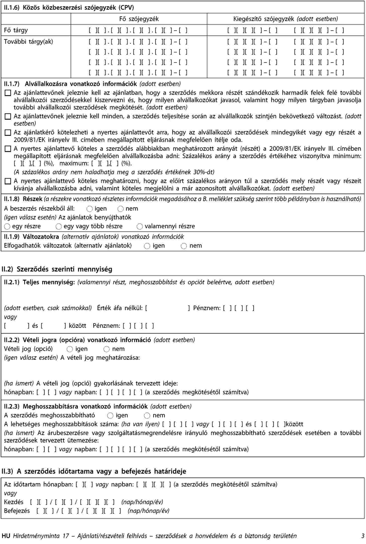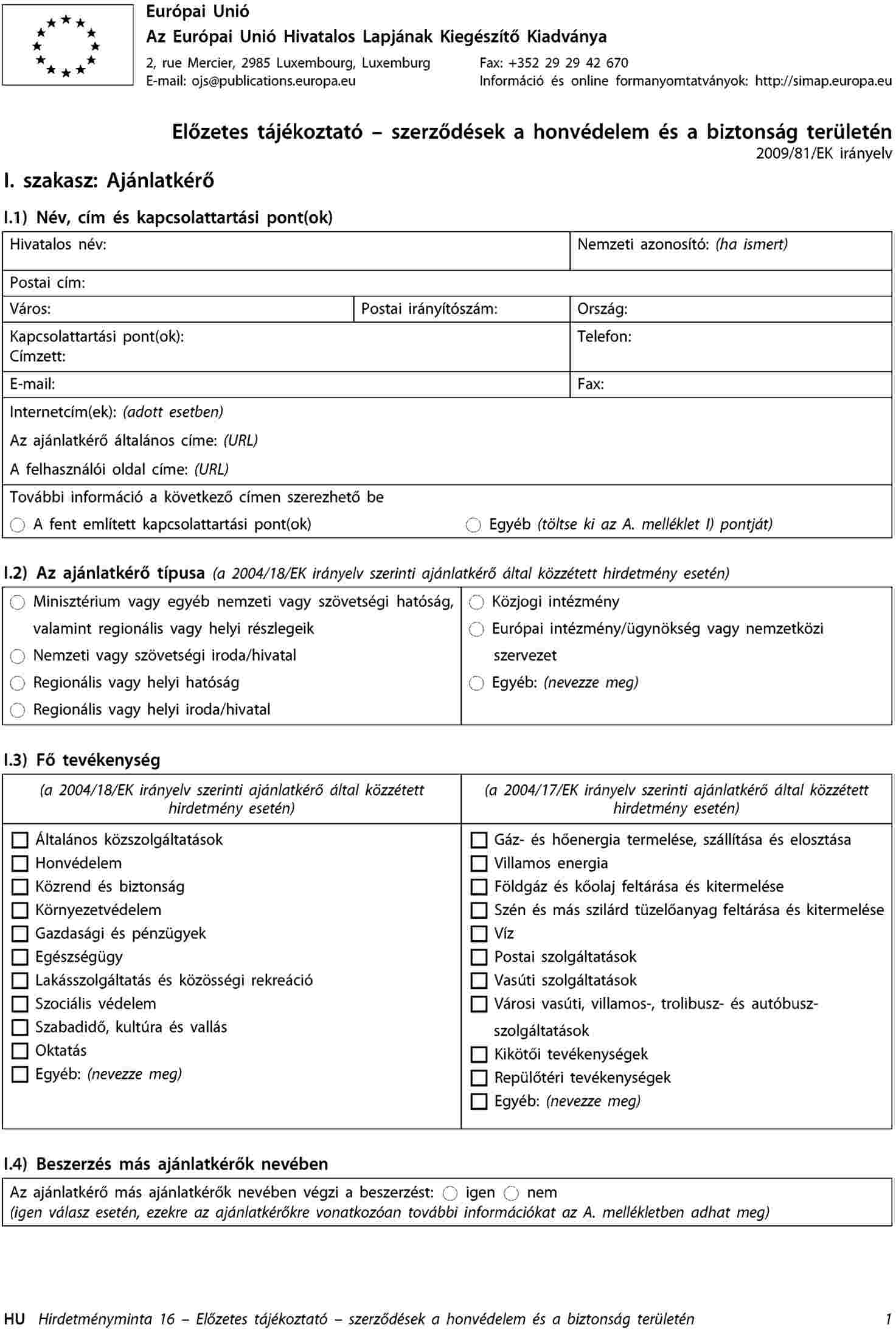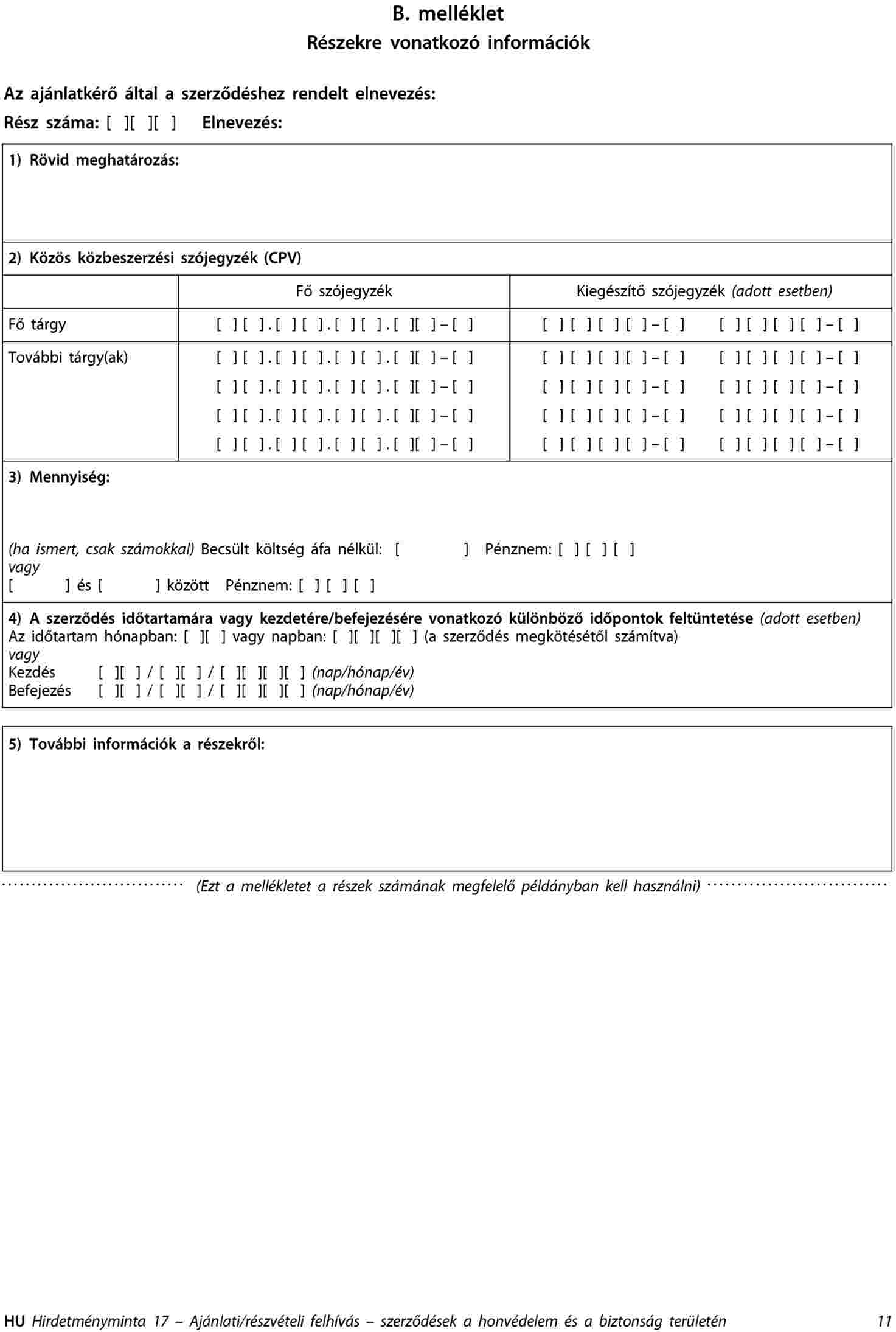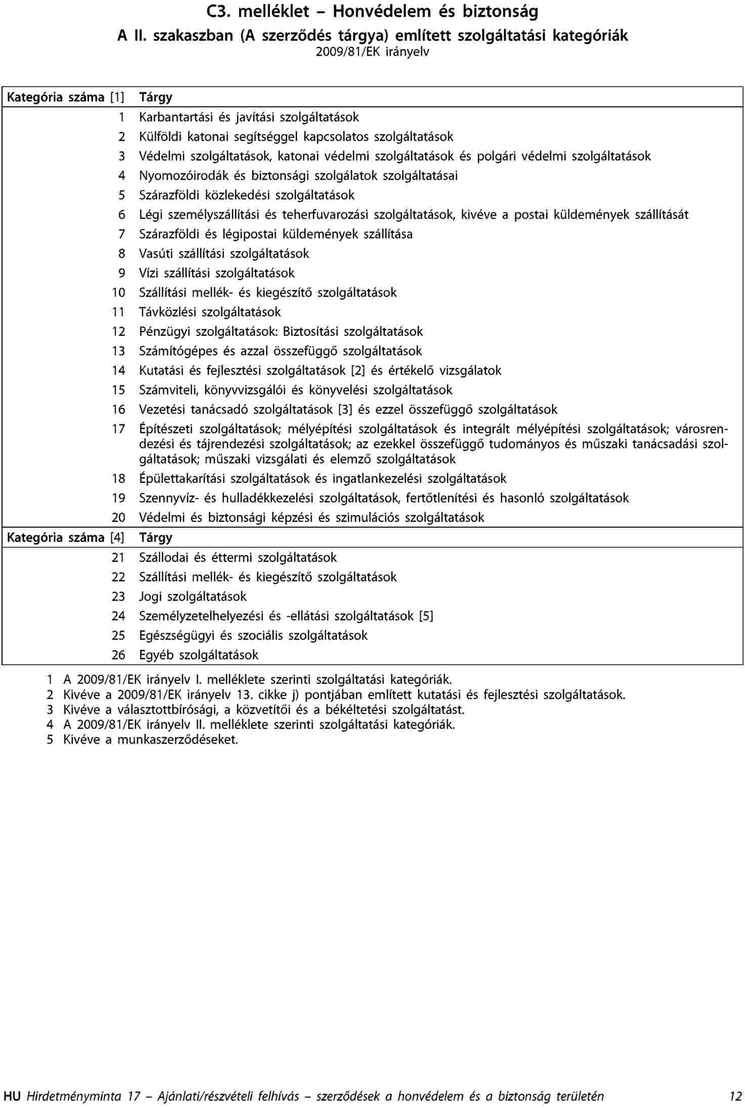 XVI. melléklet: : 17. hirdetményminta : "Ajánlati/részvételi felhívás - Honvédelem és biztonság"