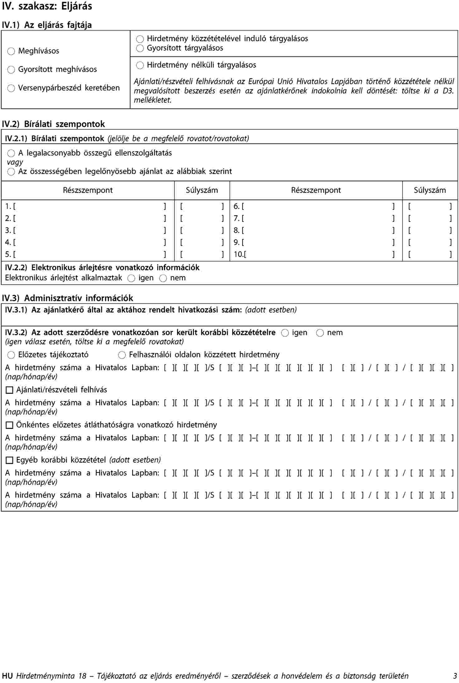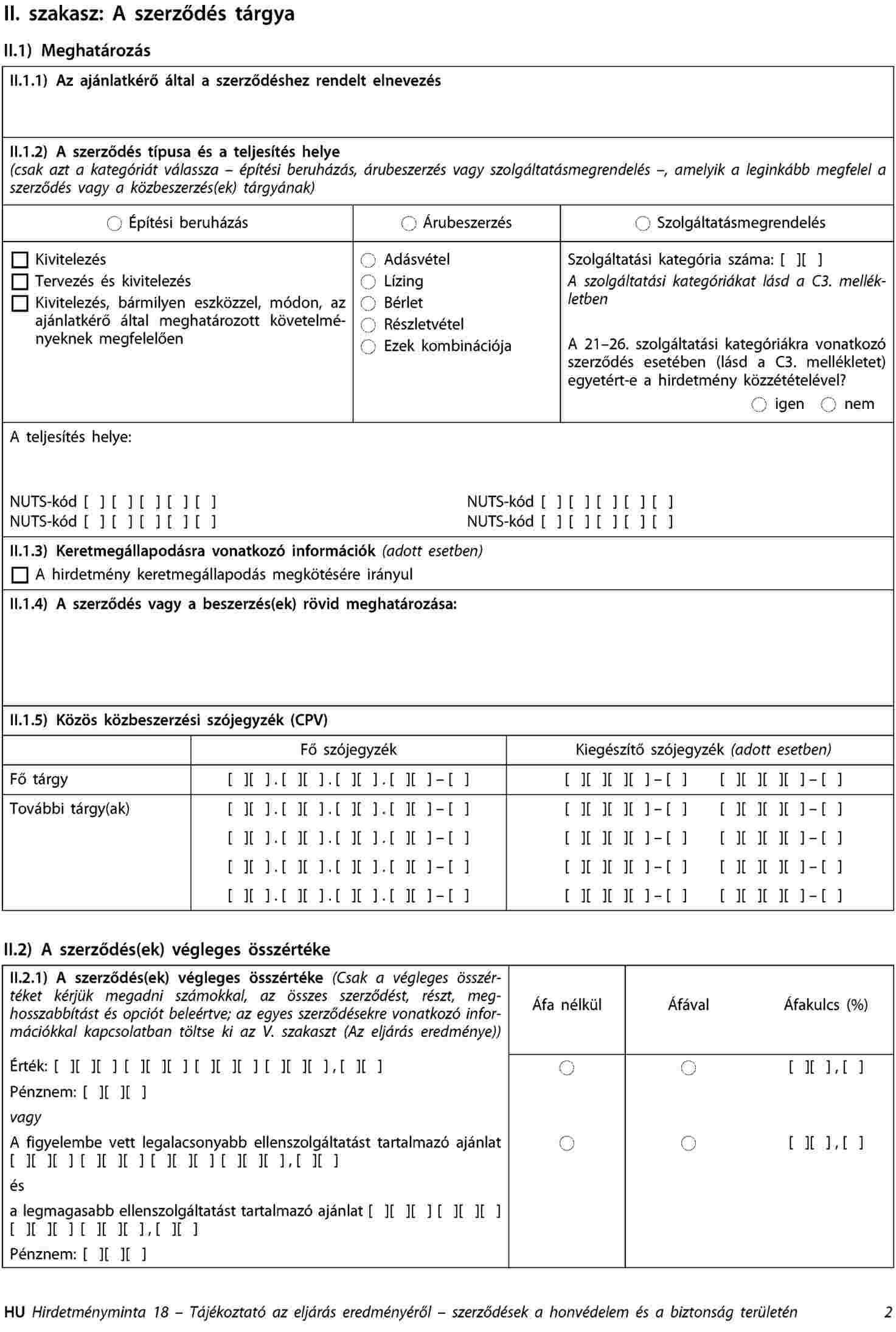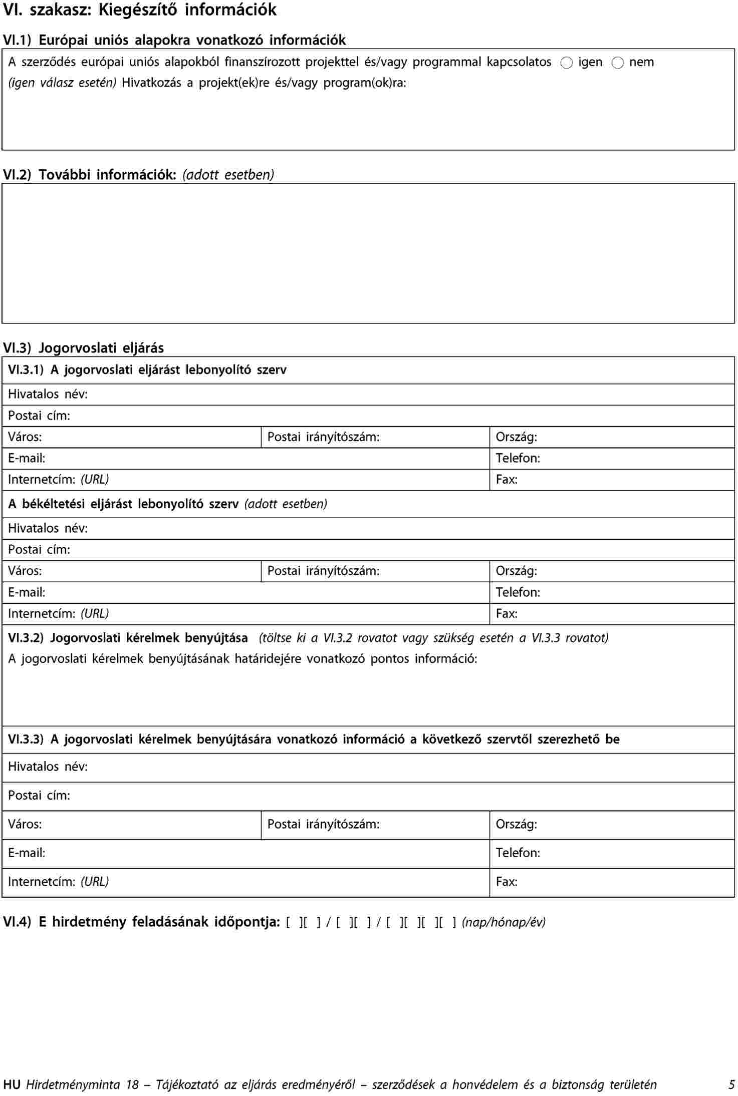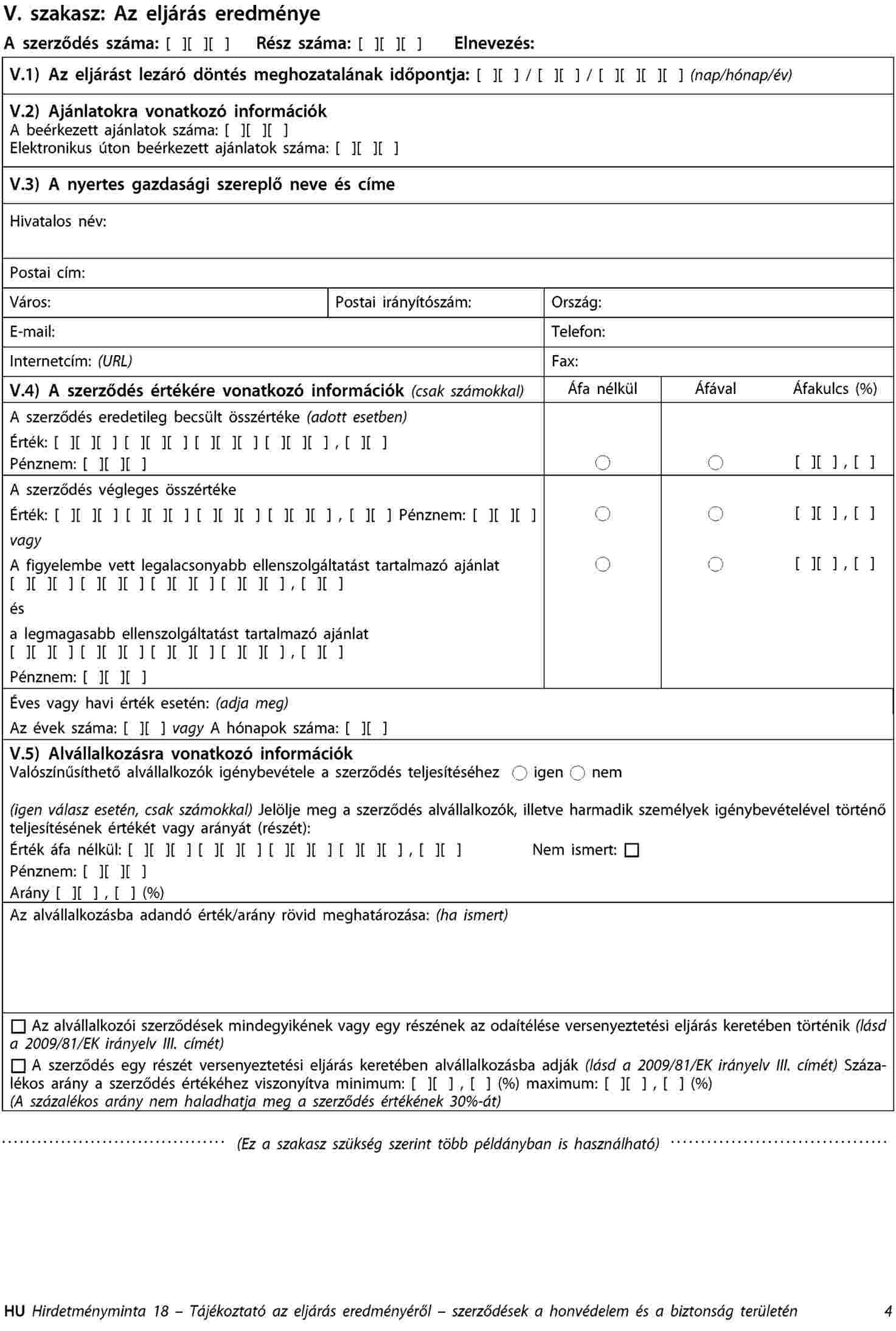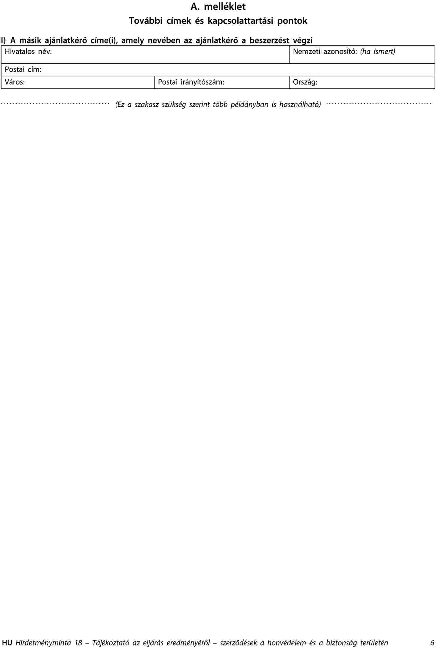 XVII. melléklet: : 18. hirdetményminta : "Tájékoztató az eljárás eredményéről - Honvédelem és biztonság"