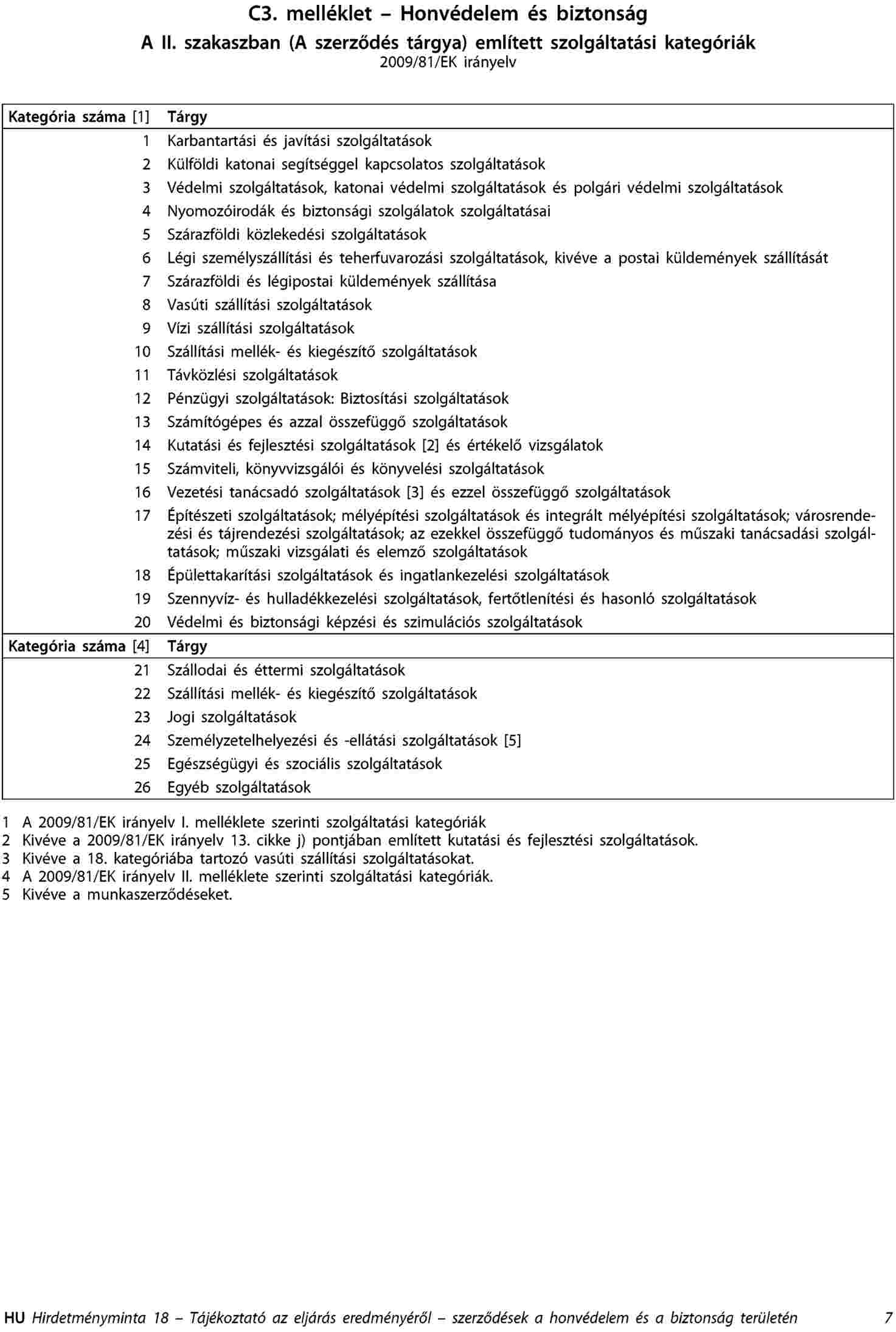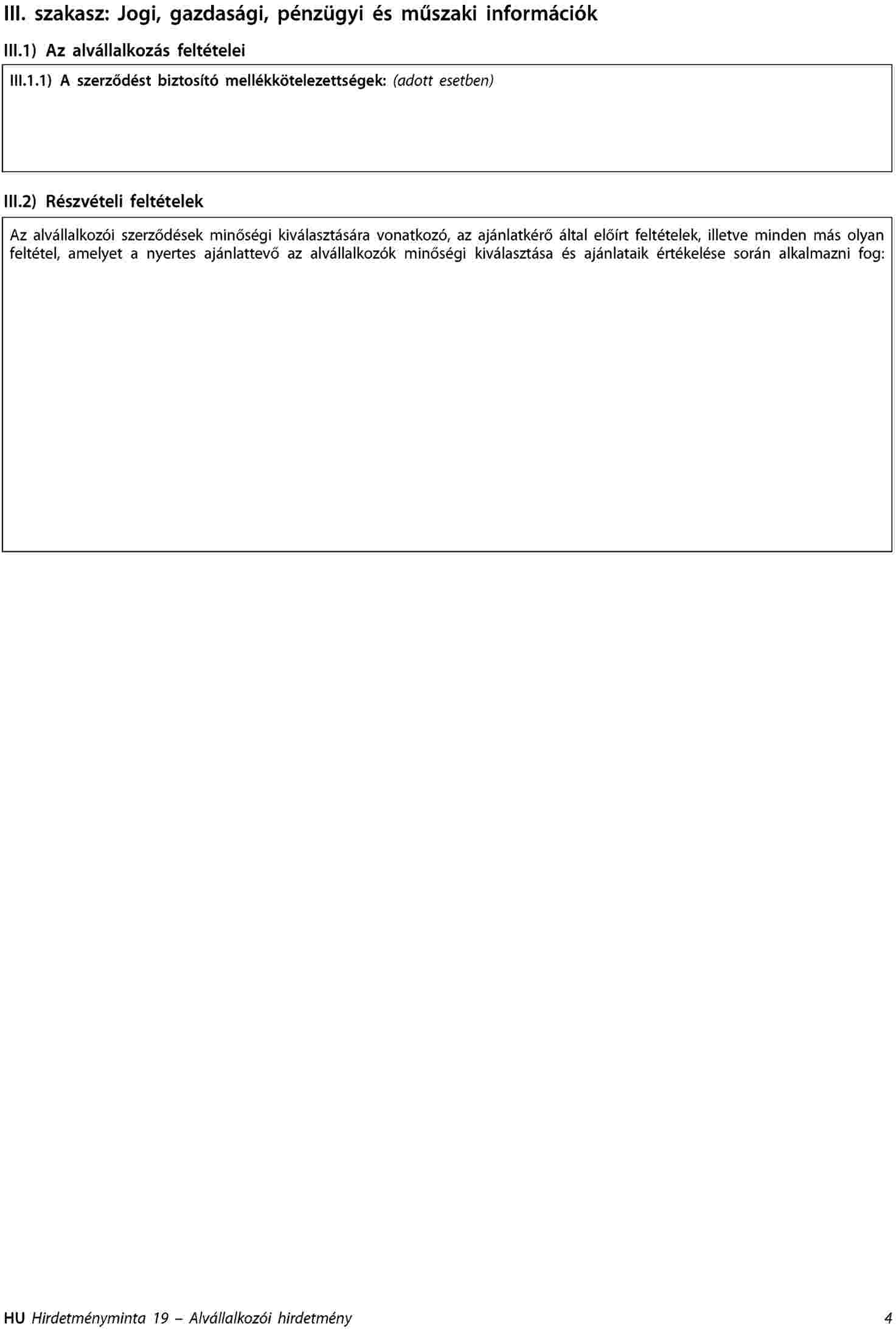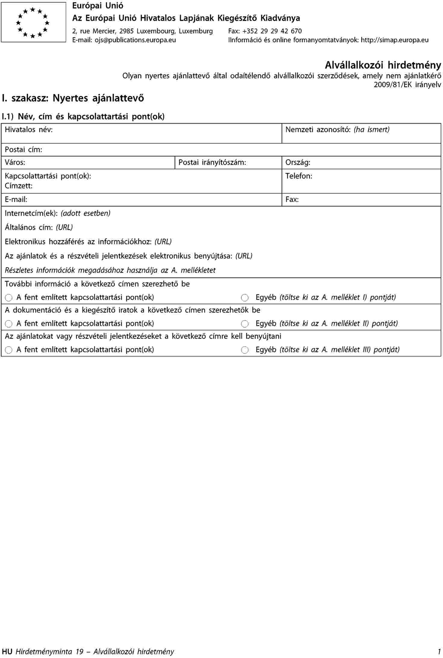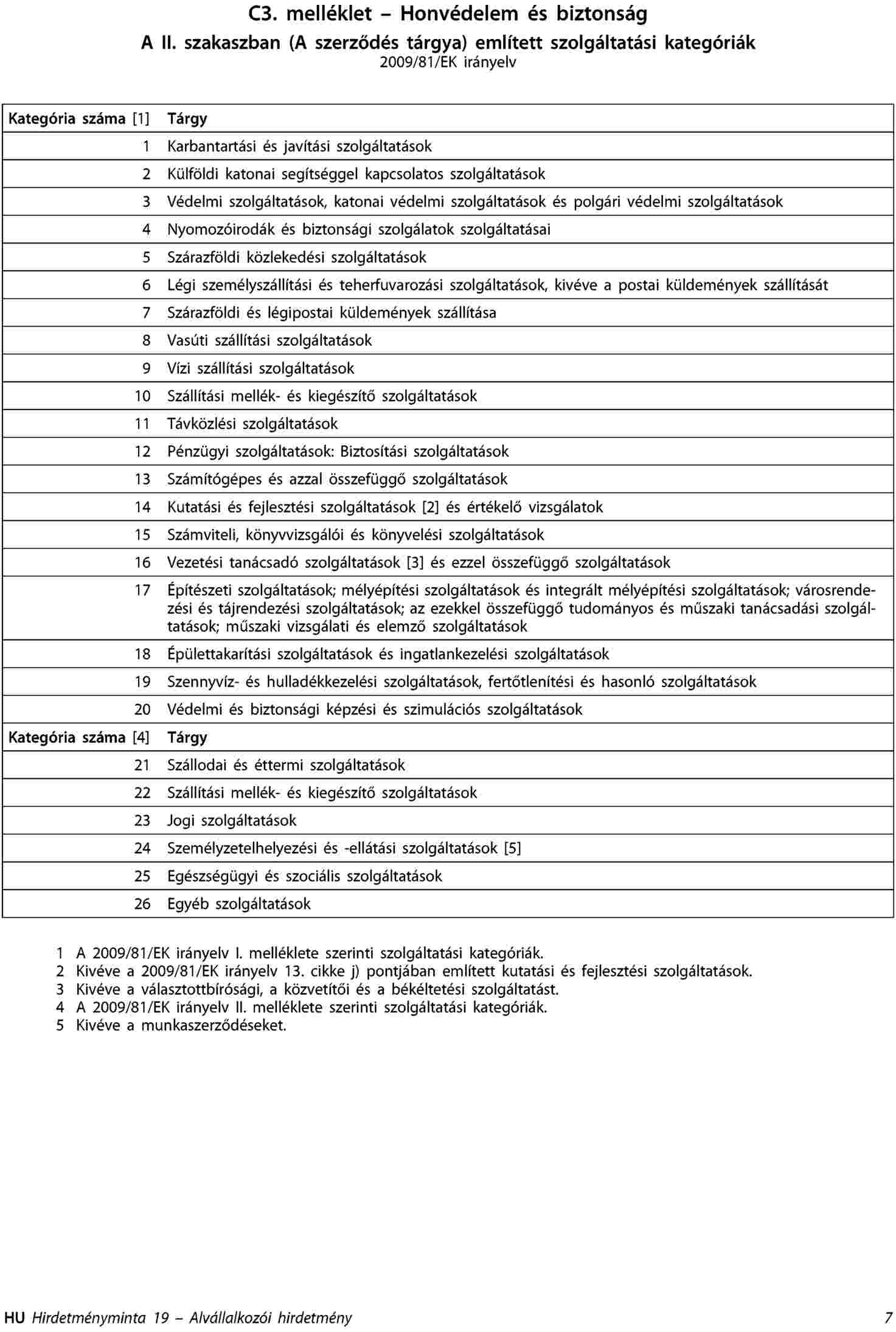 XVIII. melléklet: : 19. hirdetményminta : "Alvállalkozói hirdetmény - Honvédelem és biztonság"
