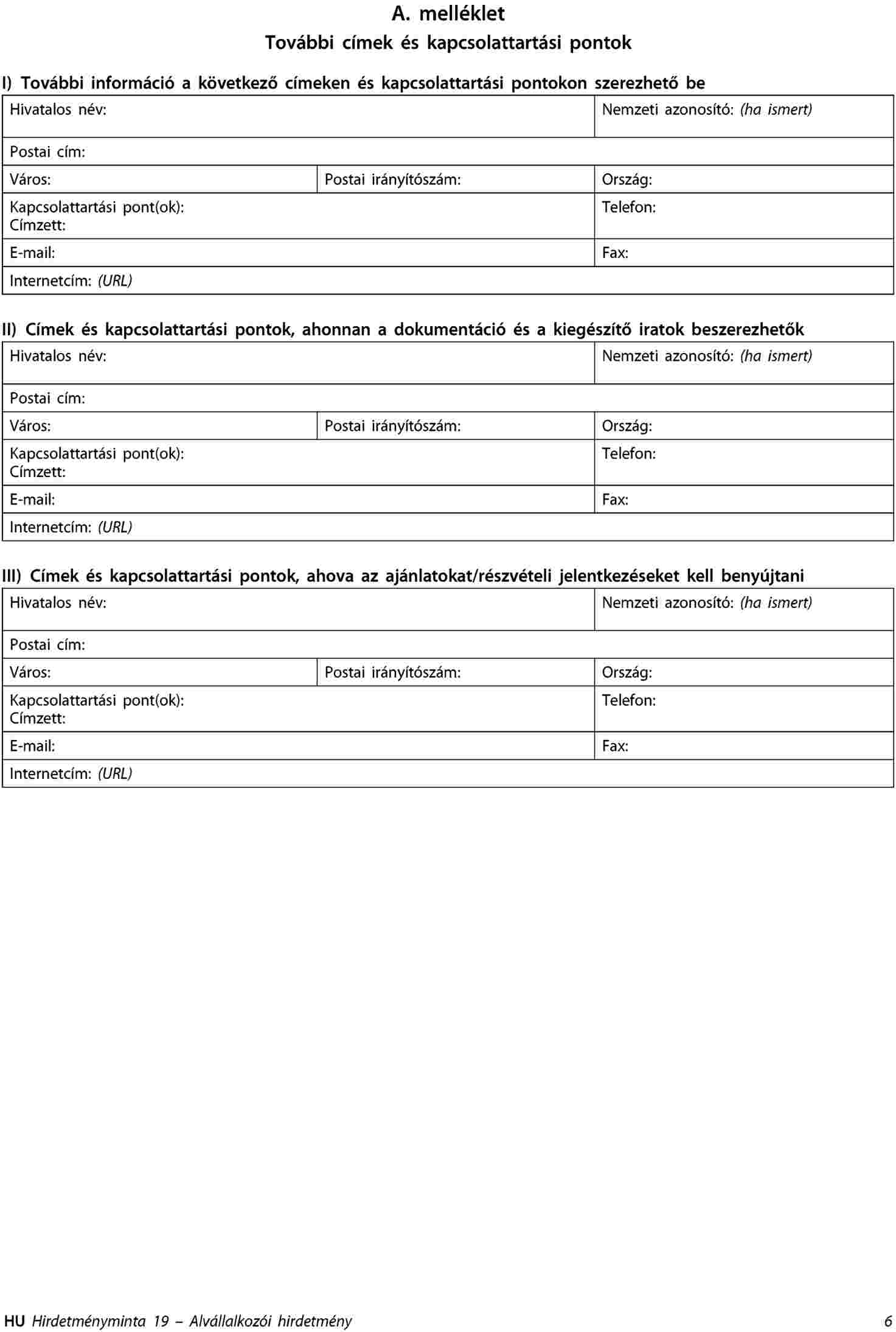 II. melléklet: : 2. hirdetményminta : "Ajánlati/részvételi felhívás"