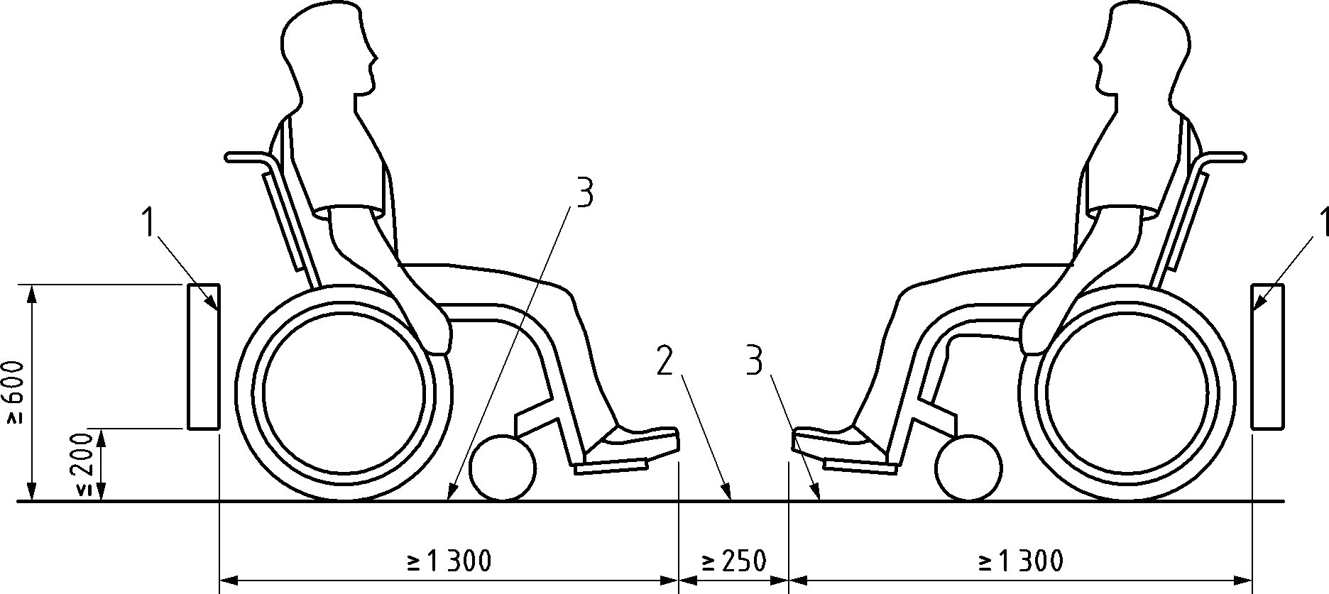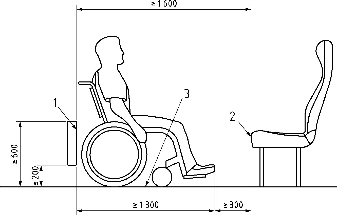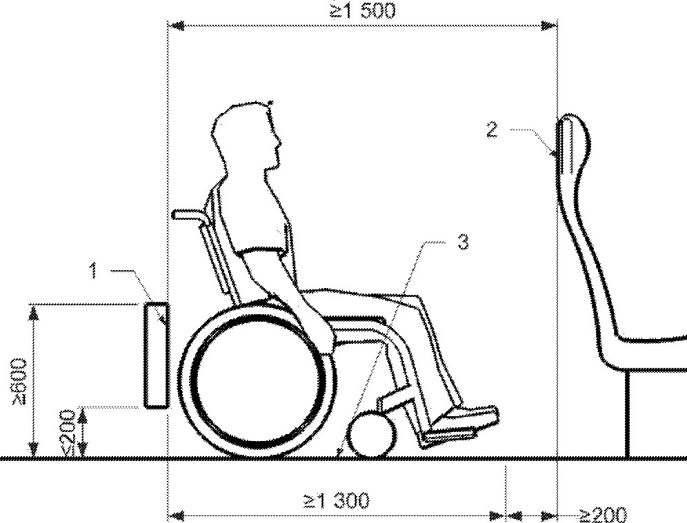 A kerekesszékek számára kialakított helyekhez és vissza vezető legkisebb közlekedő profilja