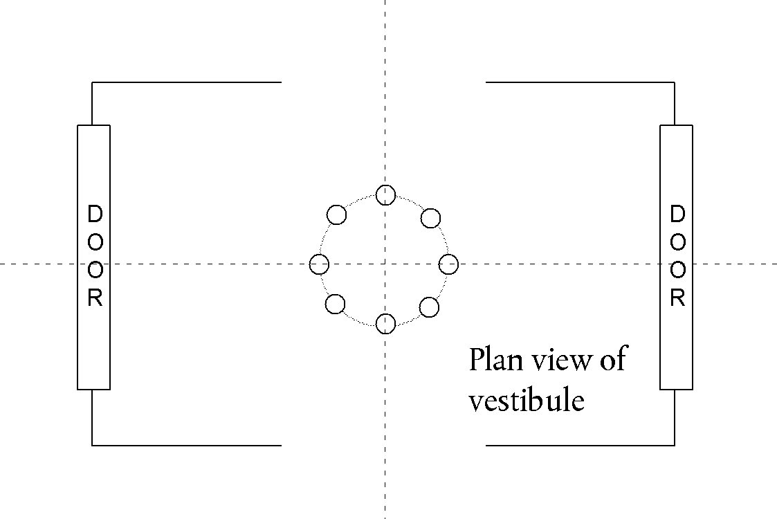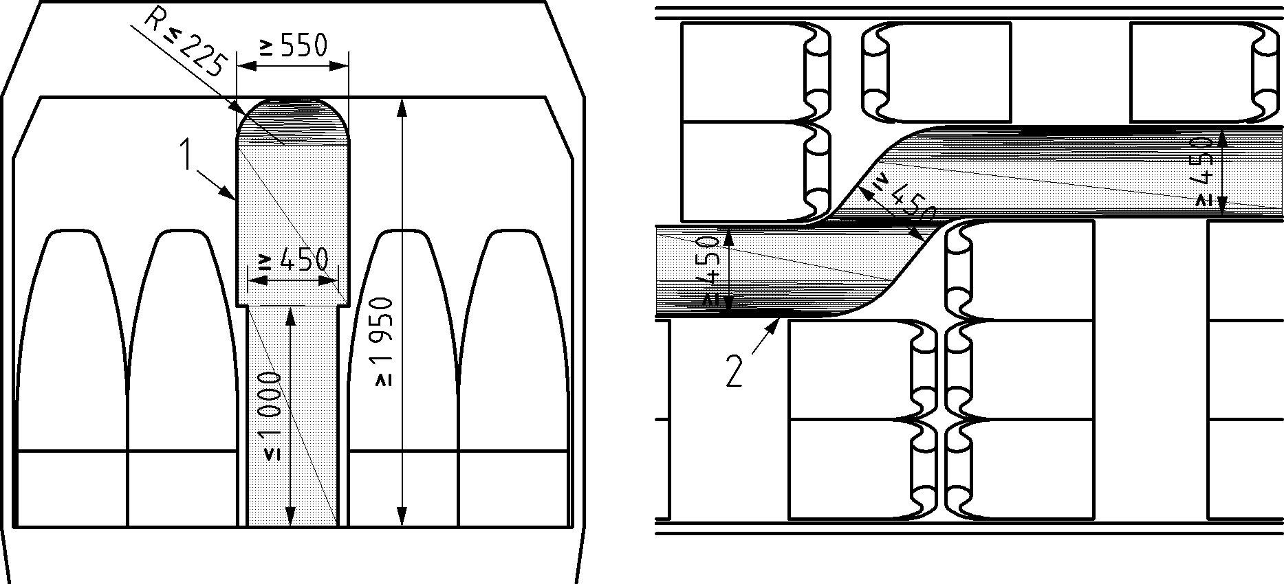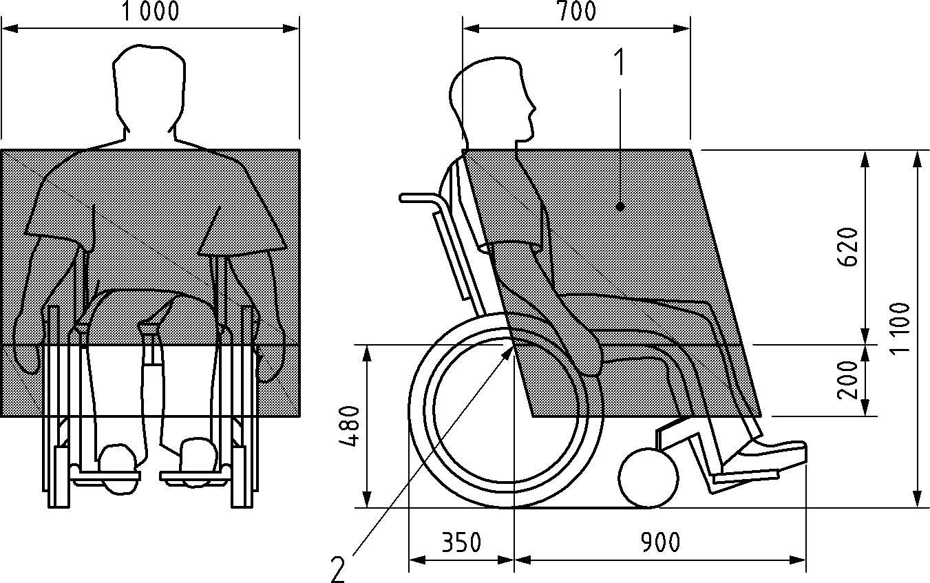 A kerekesszékek számára kialakított helyekhez és vissza vezető legkisebb közlekedő profilja