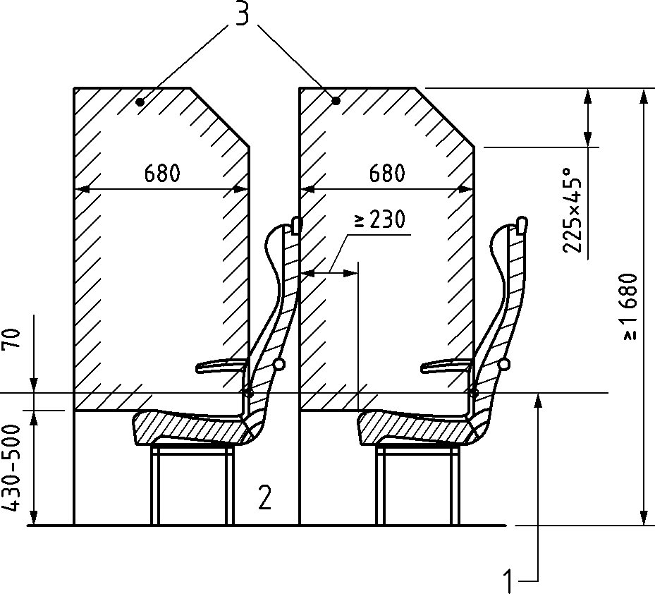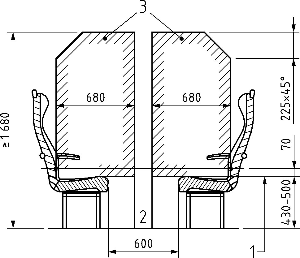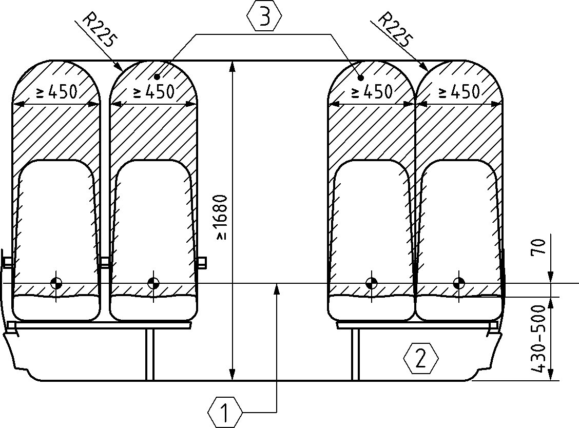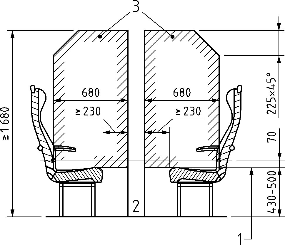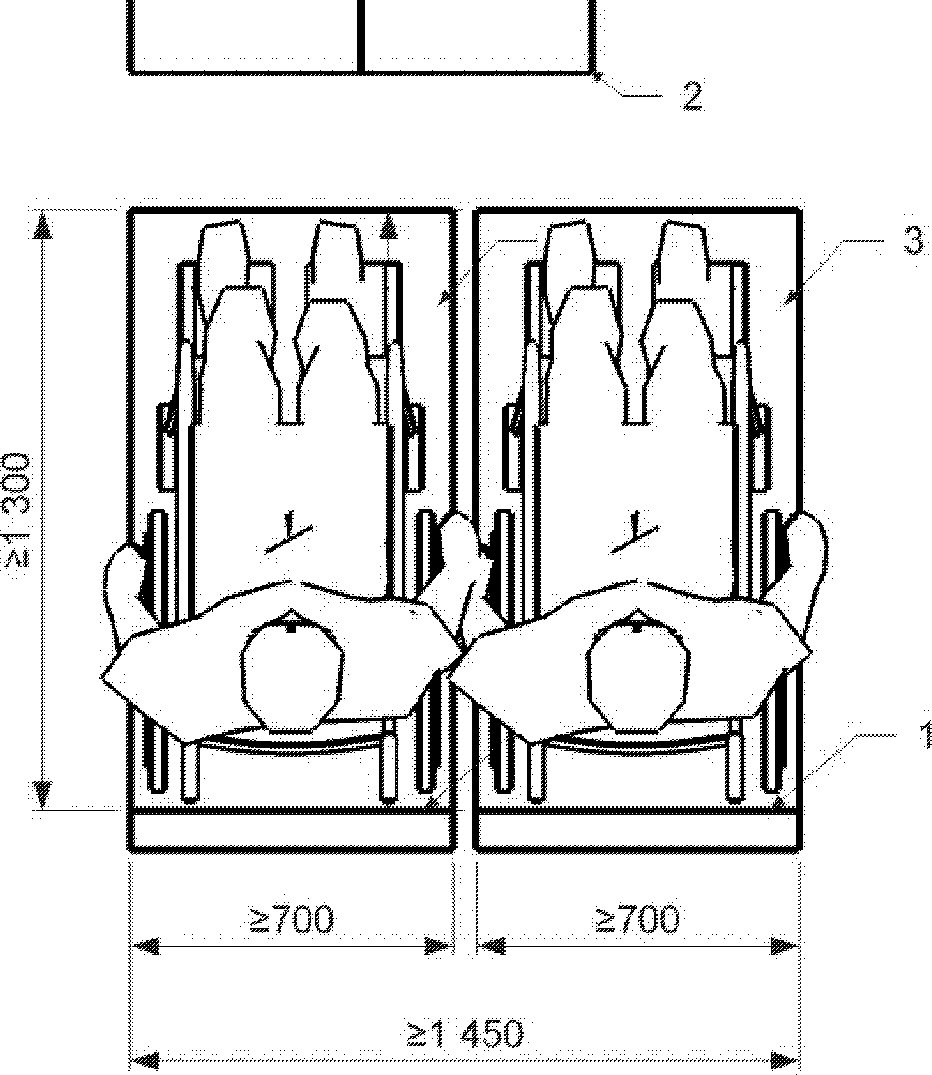 2A kerekesszék számára kialakított helyek közötti tér legalább 250 mm
