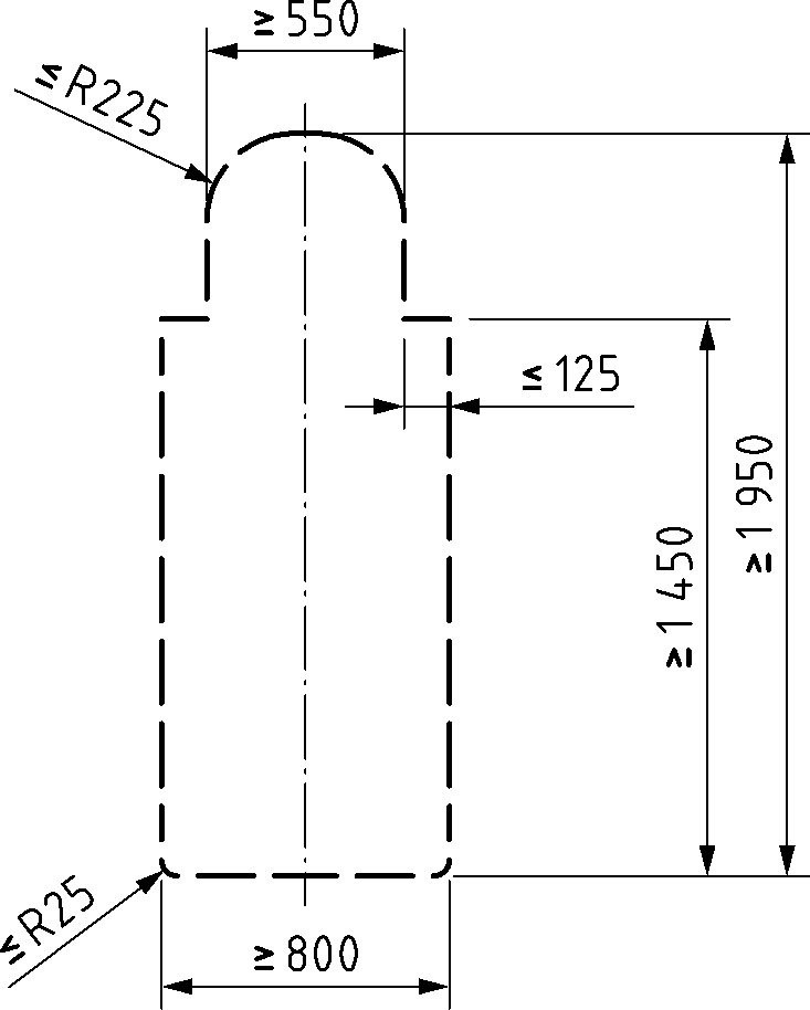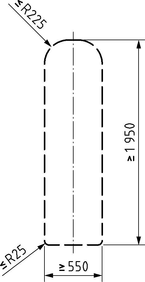 - 700 mm szélesség plusz 50 mm mindkét oldalon a kéz számára mozgás közben
