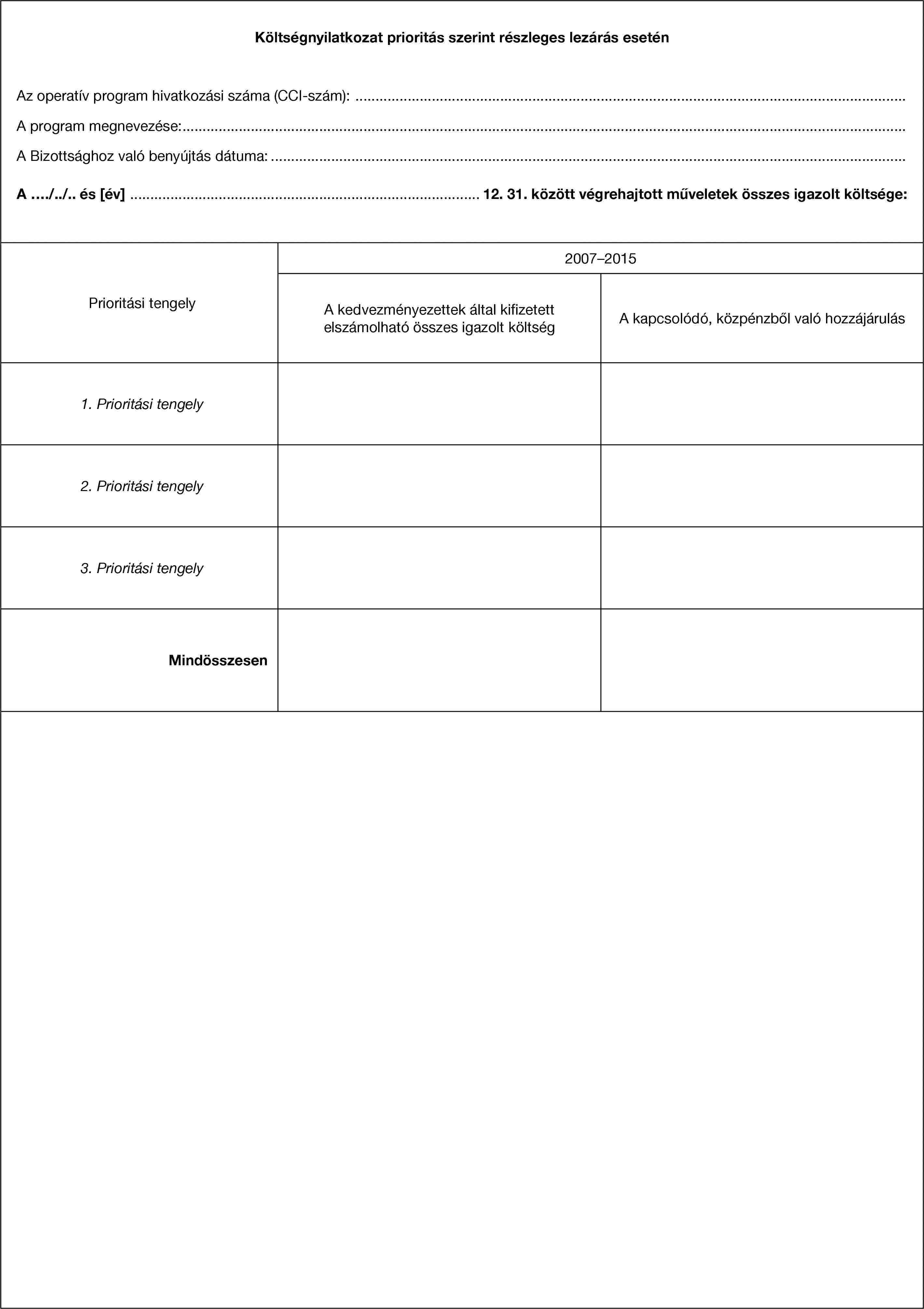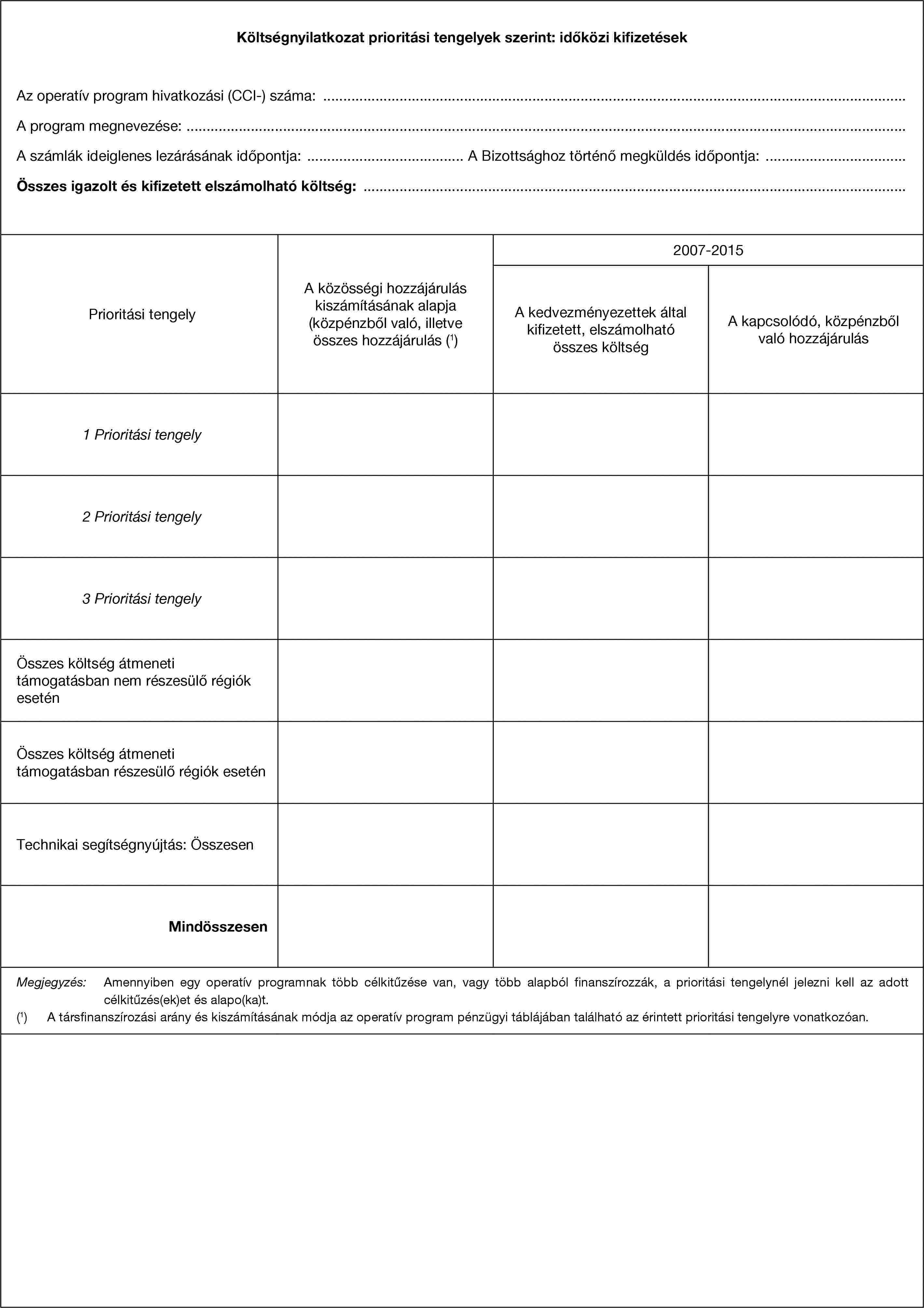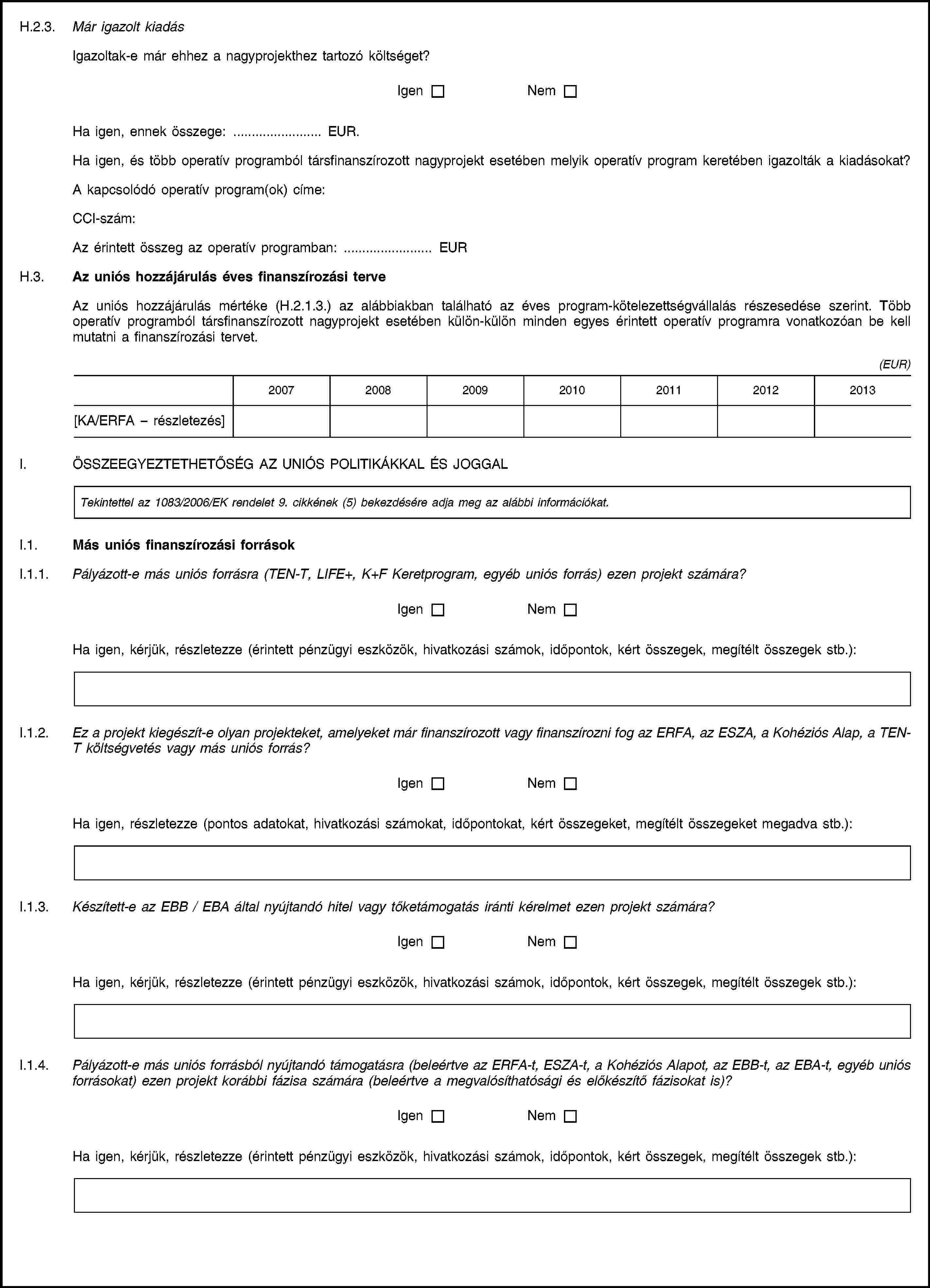 Már igazolt kiadás | Teljes összeg (EUR): Összeg az egyes operatív programokra vonatkozóan (EUR): | H.2.3 | H.2.3 | EUR |