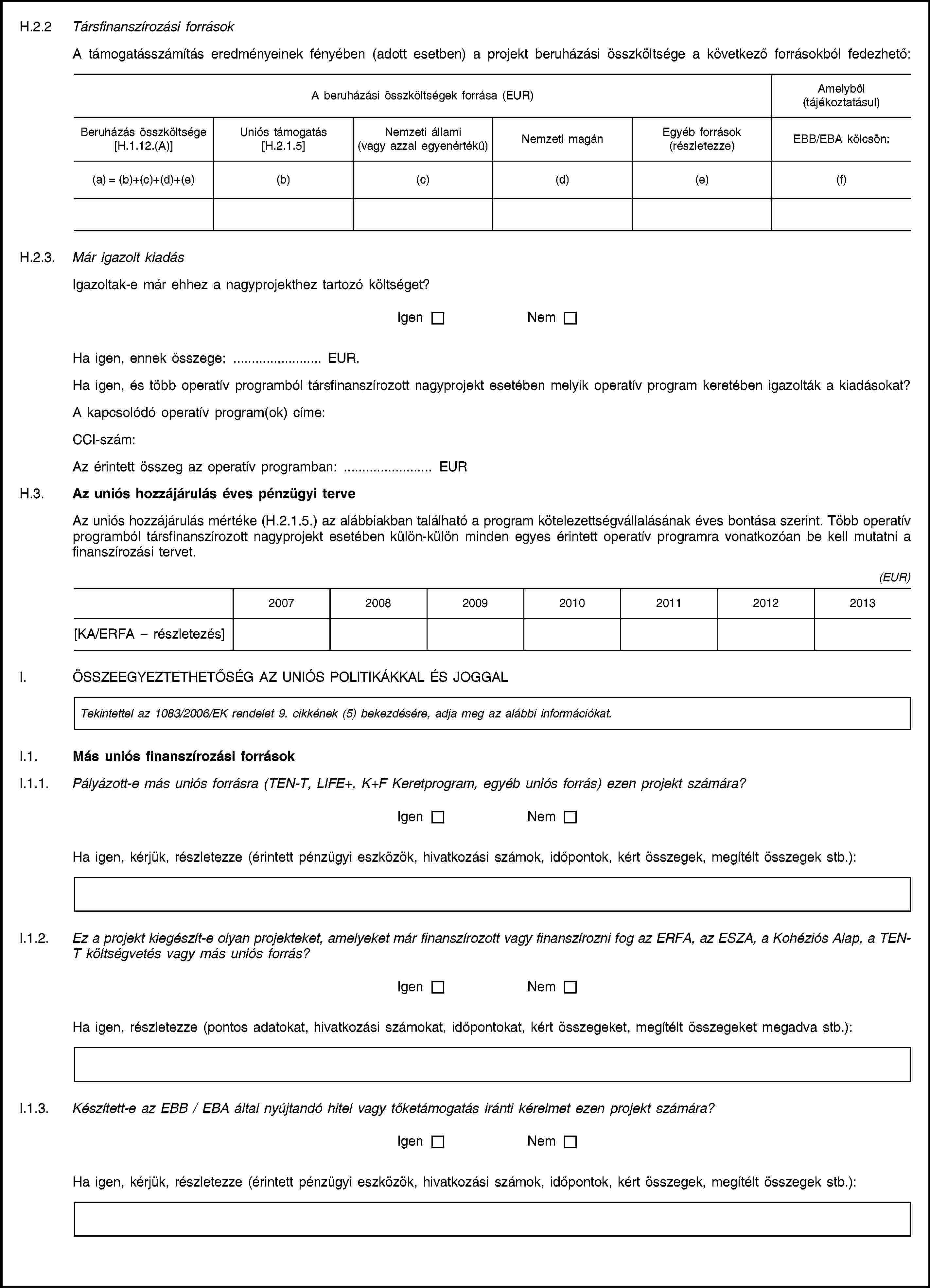 Uniós támogatás | H.2.1.5 | H.2.1.3 | EUR | |