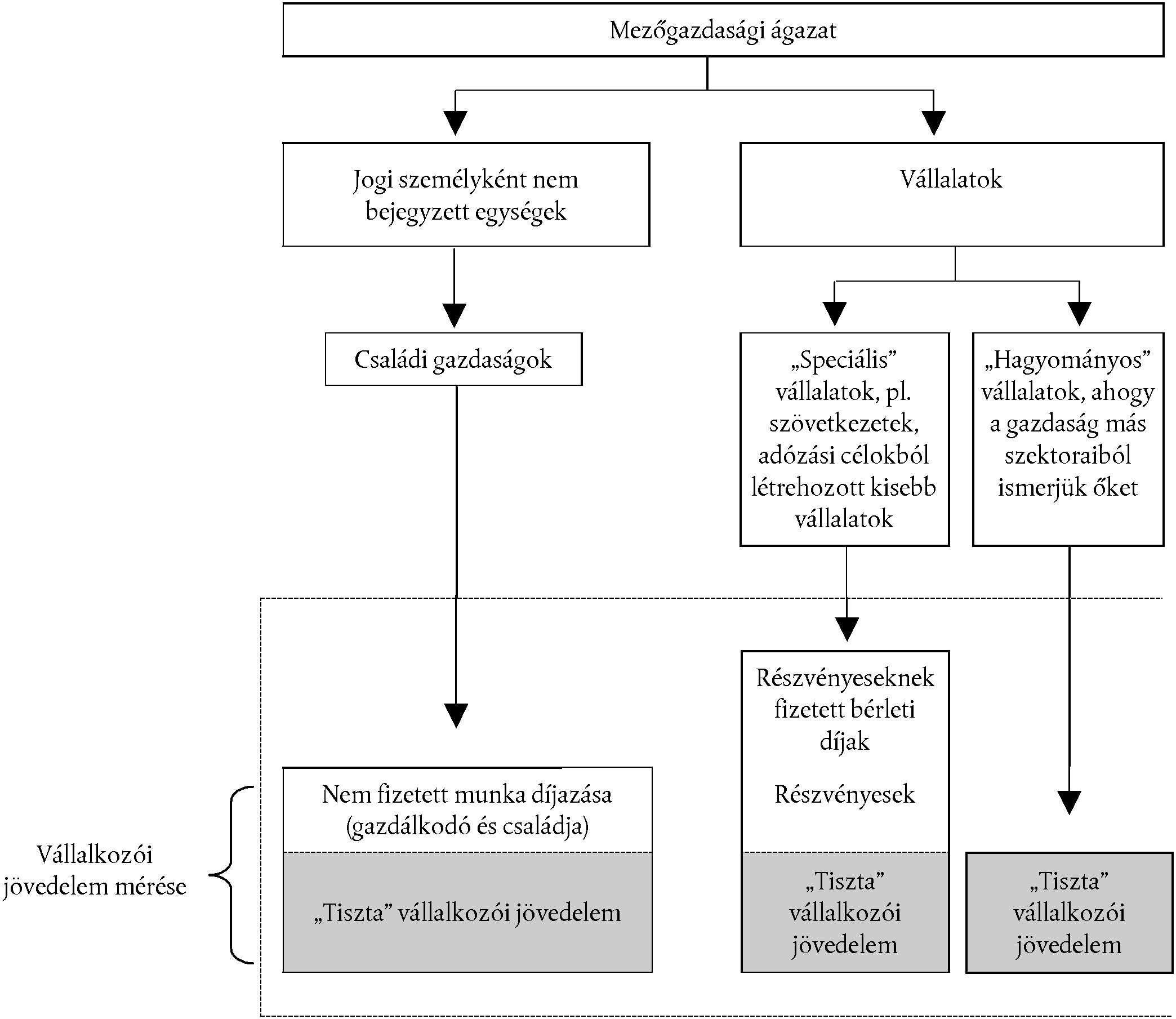 1.08. Megkülönböztetést kell tenni a mezőgazdasági termelés által előállított jövedelem és a mezőgazdasággal foglalkozó háztartások jövedelme között, amely utóbbi a mezőgazdasági tevékenységből származó jövedelmen kívül a mezőgazdasággal foglalkozó háztartások esetében esetlegesen fennálló egyéb forrásokból (tulajdon, társadalmi juttatások stb.) származó jövedelmet is tartalmazza. Ezt a két jövedelemtípust (a mezőgazdasági termelés által előállított jövedelem és a mezőgazdasággal foglalkozó háztartások összjövedelme) két különböző célból mérik, ami a gazdaság felosztásának két különböző módját kívánja meg: az első az EAA esetében a termelőegységeken alapul, amelyek meghatározása valamely tevékenységi ágazatra való hivatkozással történik, míg a második a háztartásokon (vagyis a szervezeti egységeken) alapul, amelyek fő jövedelemforrása az önálló mezőgazdasági tevékenység.