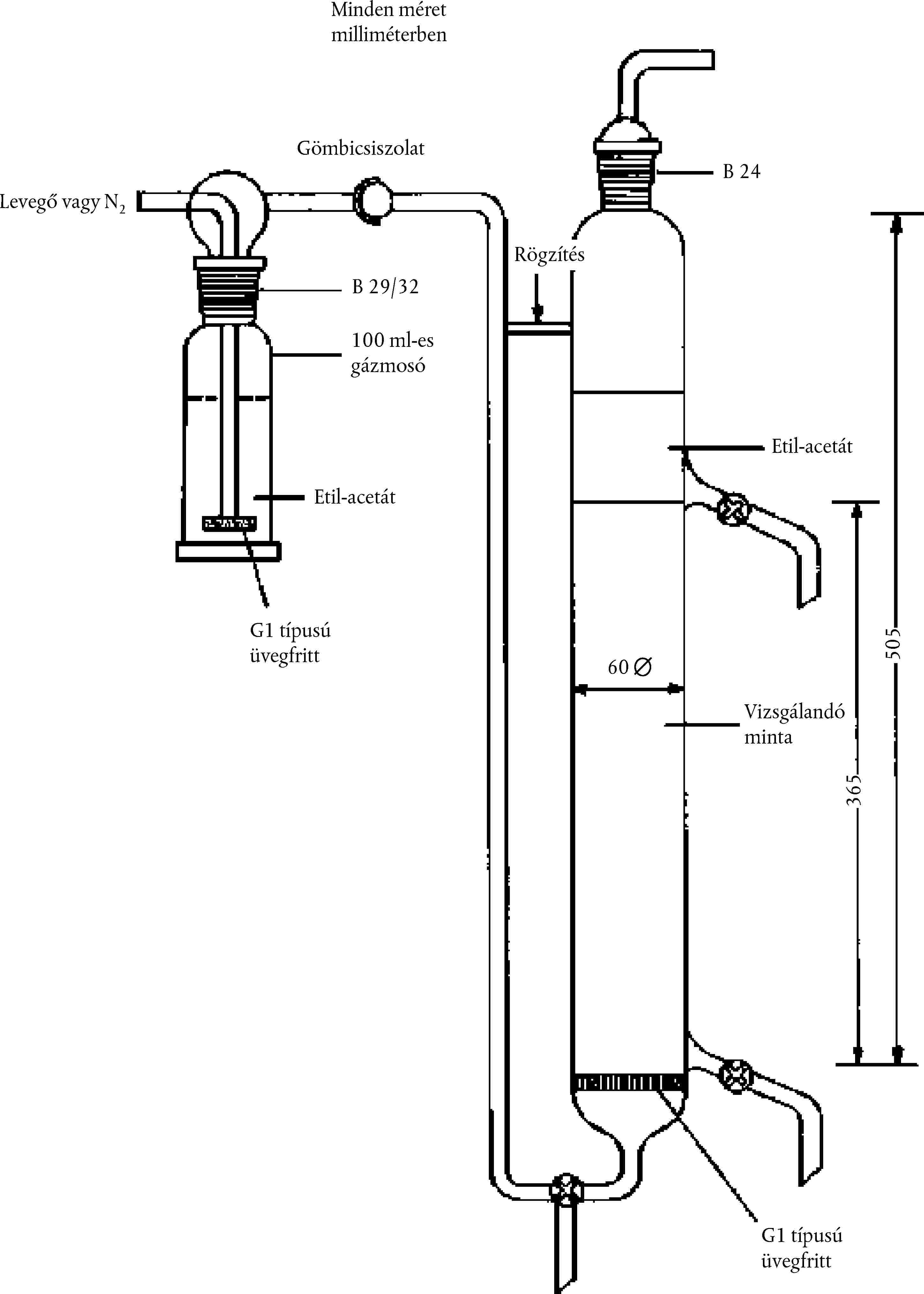 [Kép #5] 5. ábra Gáz sztrippelő készülék (minden méret mm-ben)