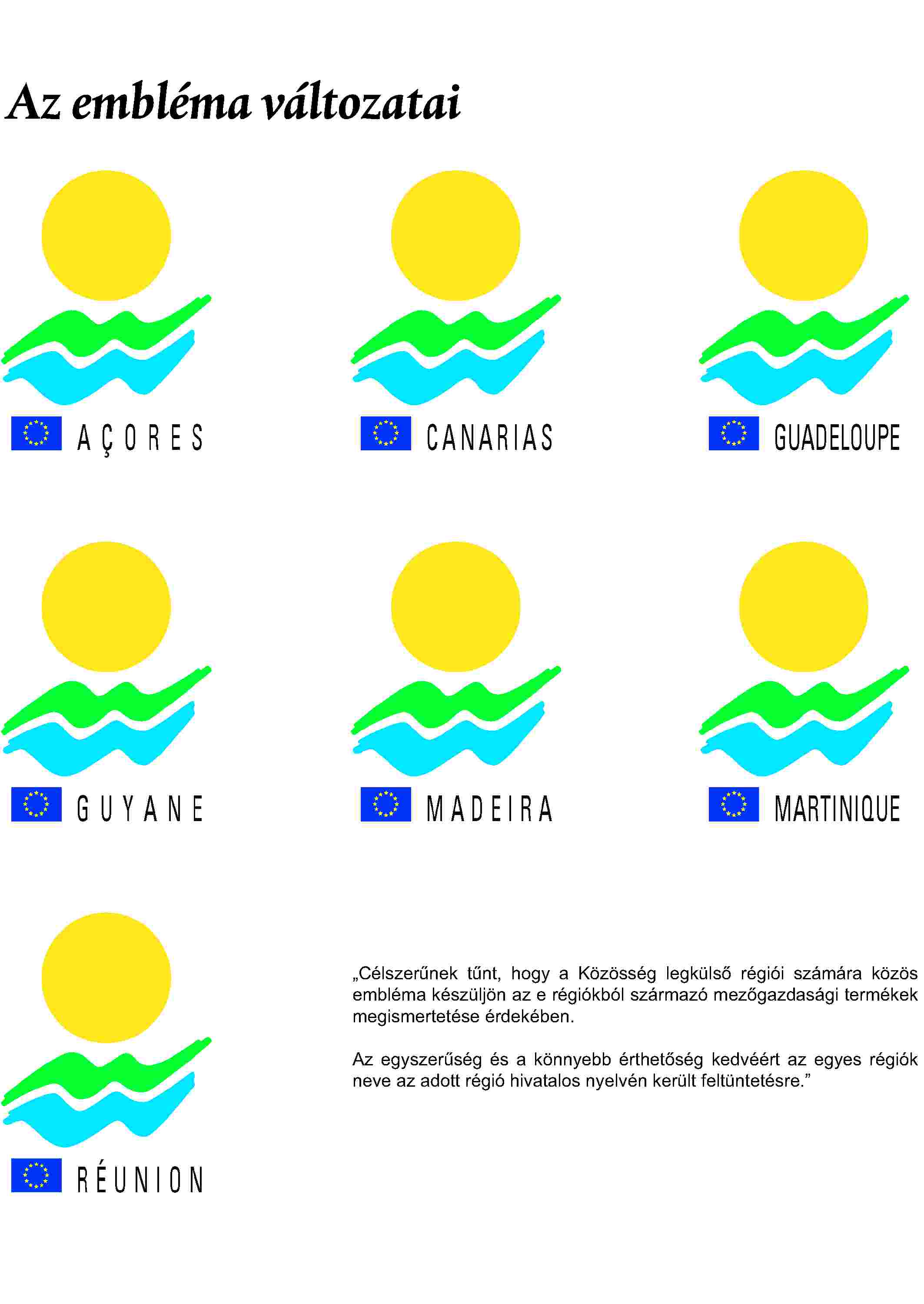 (34) Meg kell határozni a Közösség legkülső régiói jellegzetes, feldolgozott és feldolgozatlan minőségi mezőgazdasági termékeinek ismertségét javító és e termékek fogyasztására ösztönző embléma alkalmazásához szükséges részletes szabályokat.