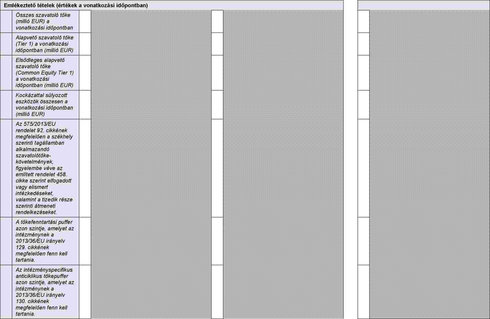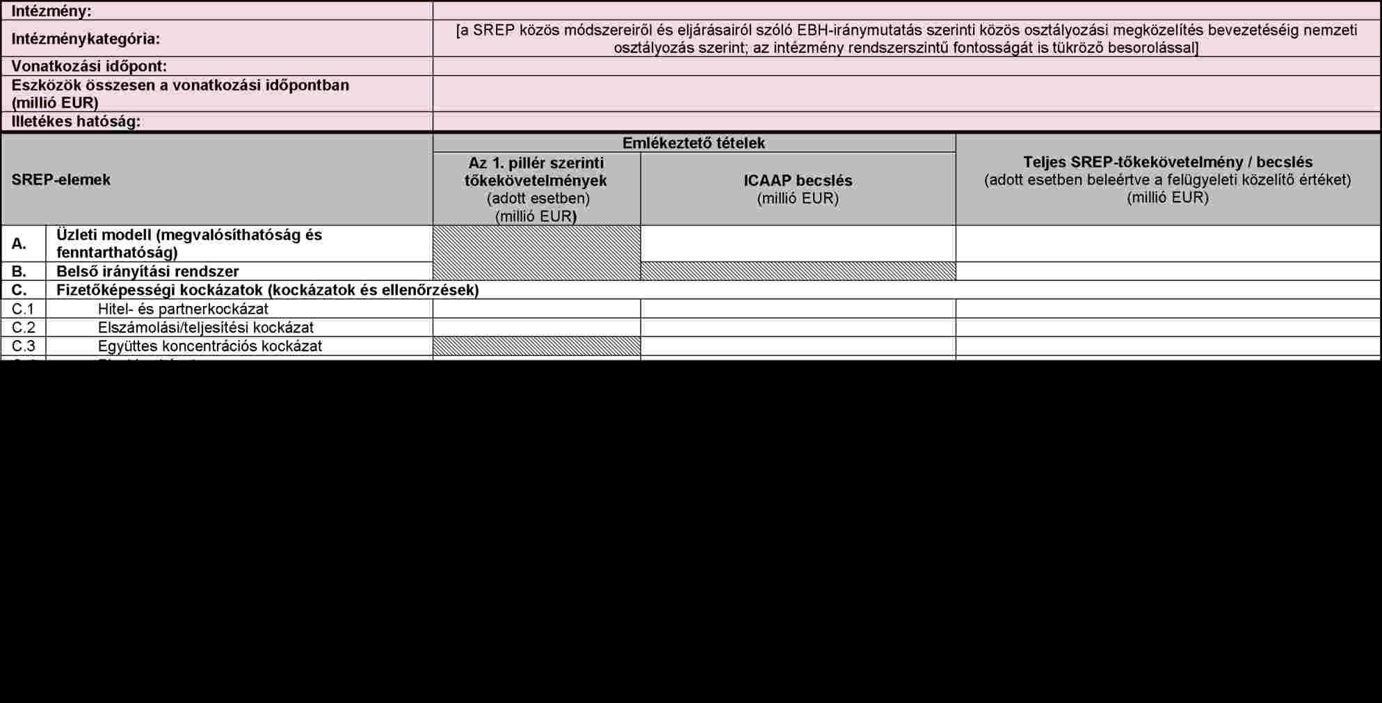 A FELÜGYELETI FELÜLVIZSGÁLATI ÉS ÉRTÉKELÉSI ELJÁRÁS (SREP) KERETÉBEN KÉSZÜLT JELENTÉSHEZ KAPCSOLÓDÓ TÁBLA