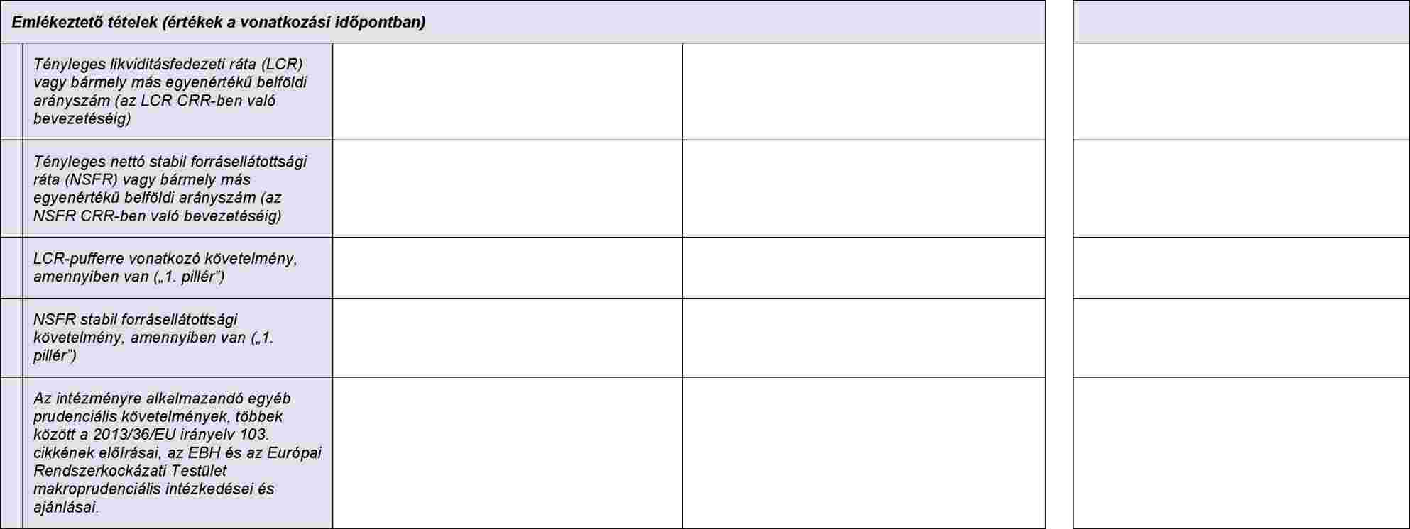 FORMANYOMTATVÁNY A LIKVIDITÁSI KOCKÁZAT ÉRTÉKELÉSÉT TARTALMAZÓ JELENTÉSHEZ