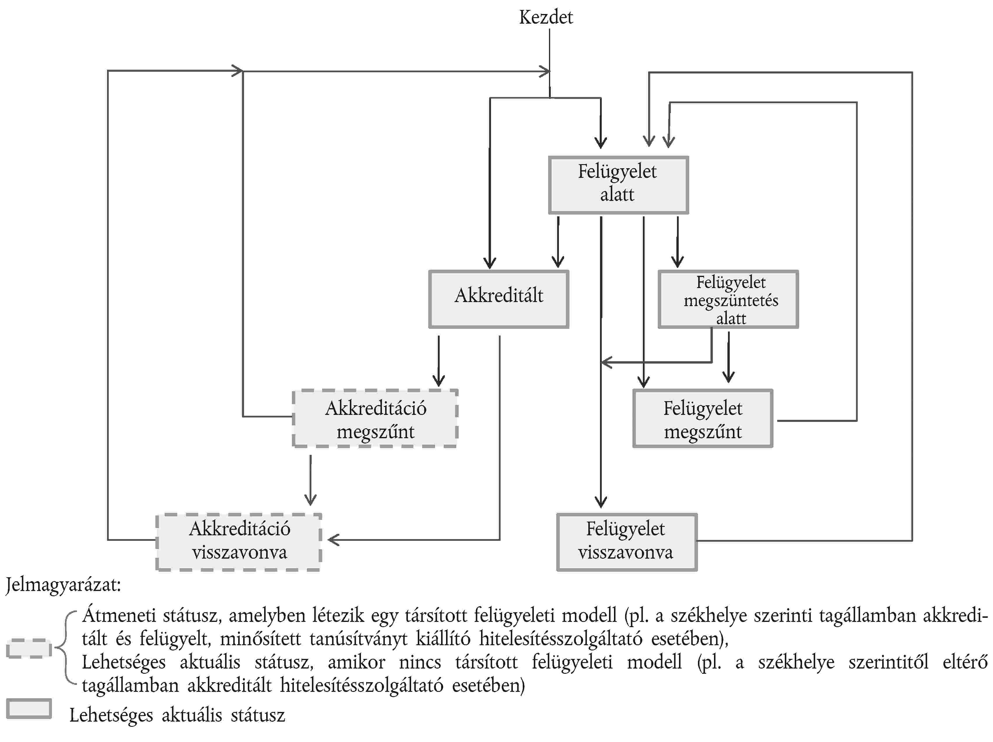 ( 10 ) Például egy tagállamban letelepedett hitelesítésszolgáltató, amely valamely, eredetileg a tagállam (felügyeleti szerv) által felügyelt hitelesítési szolgáltatást nyújt, bizonyos idő elteltével határozhat úgy, hogy a jelenleg felügyelt hitelesítési szolgáltatás tekintetében önkéntes akkreditációra tér át. Megfordítva: egy másik tagállamban lévő hitelesítésszolgáltató határozhat úgy, hogy nem hagy fel az akkreditált hitelesítési szolgáltatással, hanem - például üzleti és/vagy gazdasági okokból - az akkreditációs státusról áttér a felügyeleti státusra.