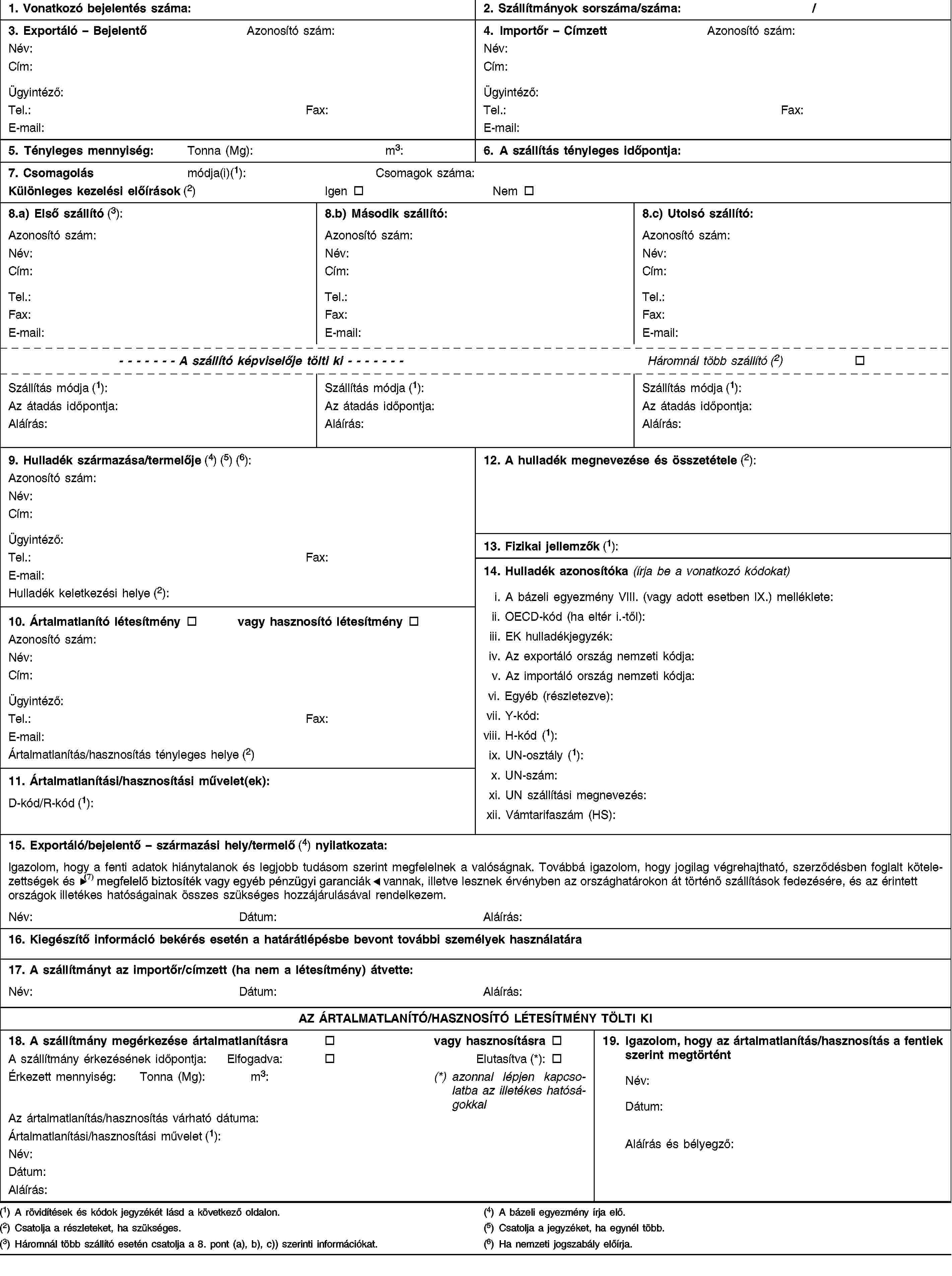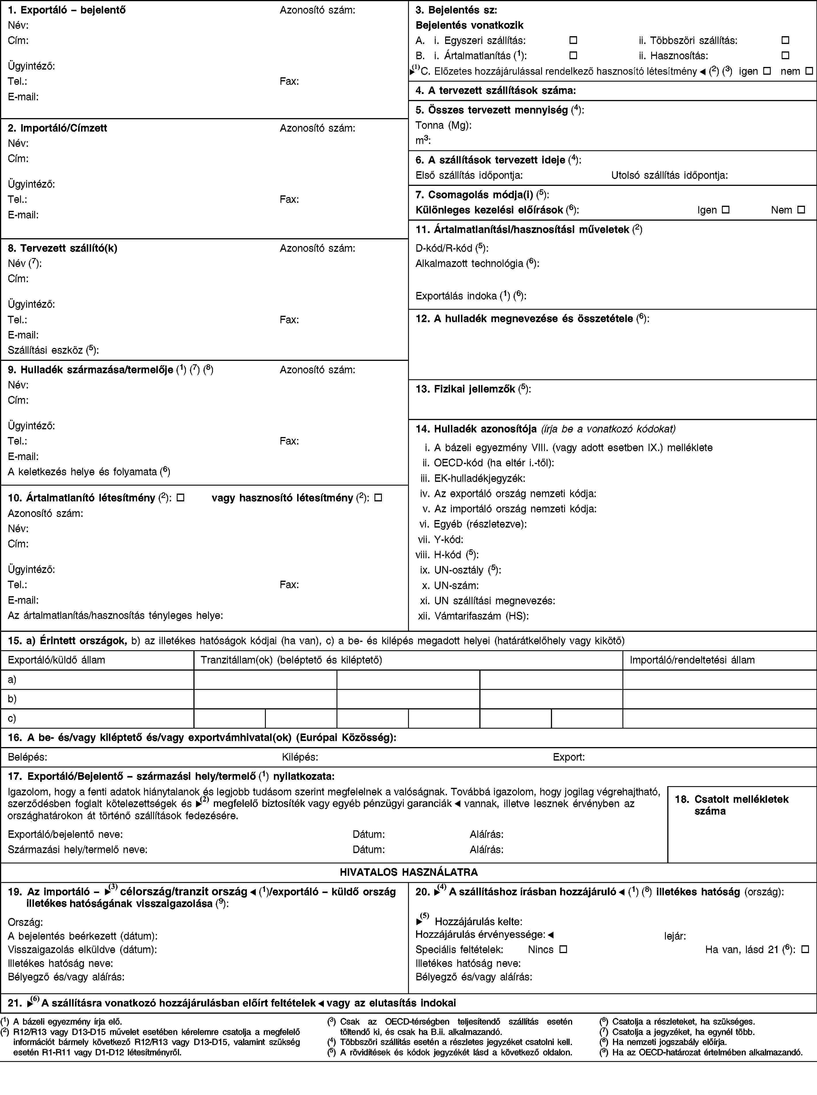 Bejelentőlap az országhatárokon keresztül történő hulladékszállításhoz