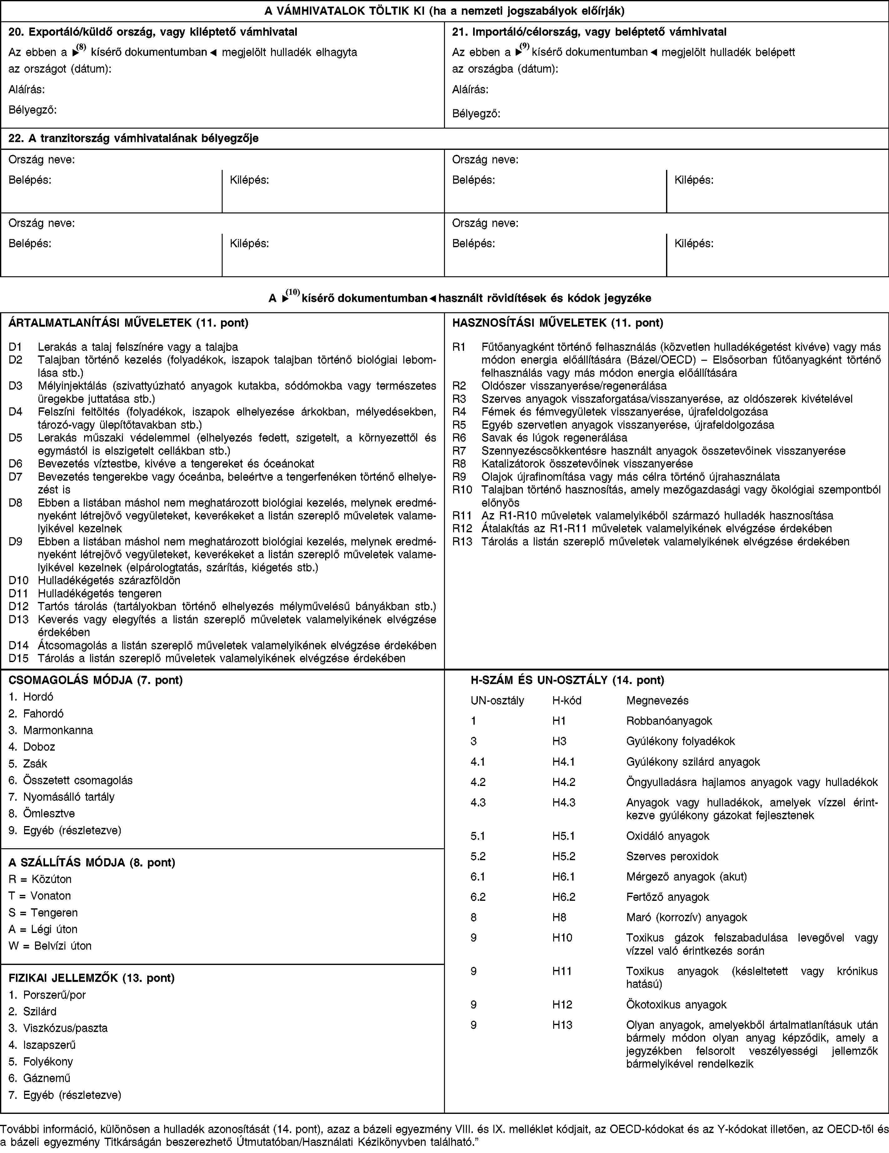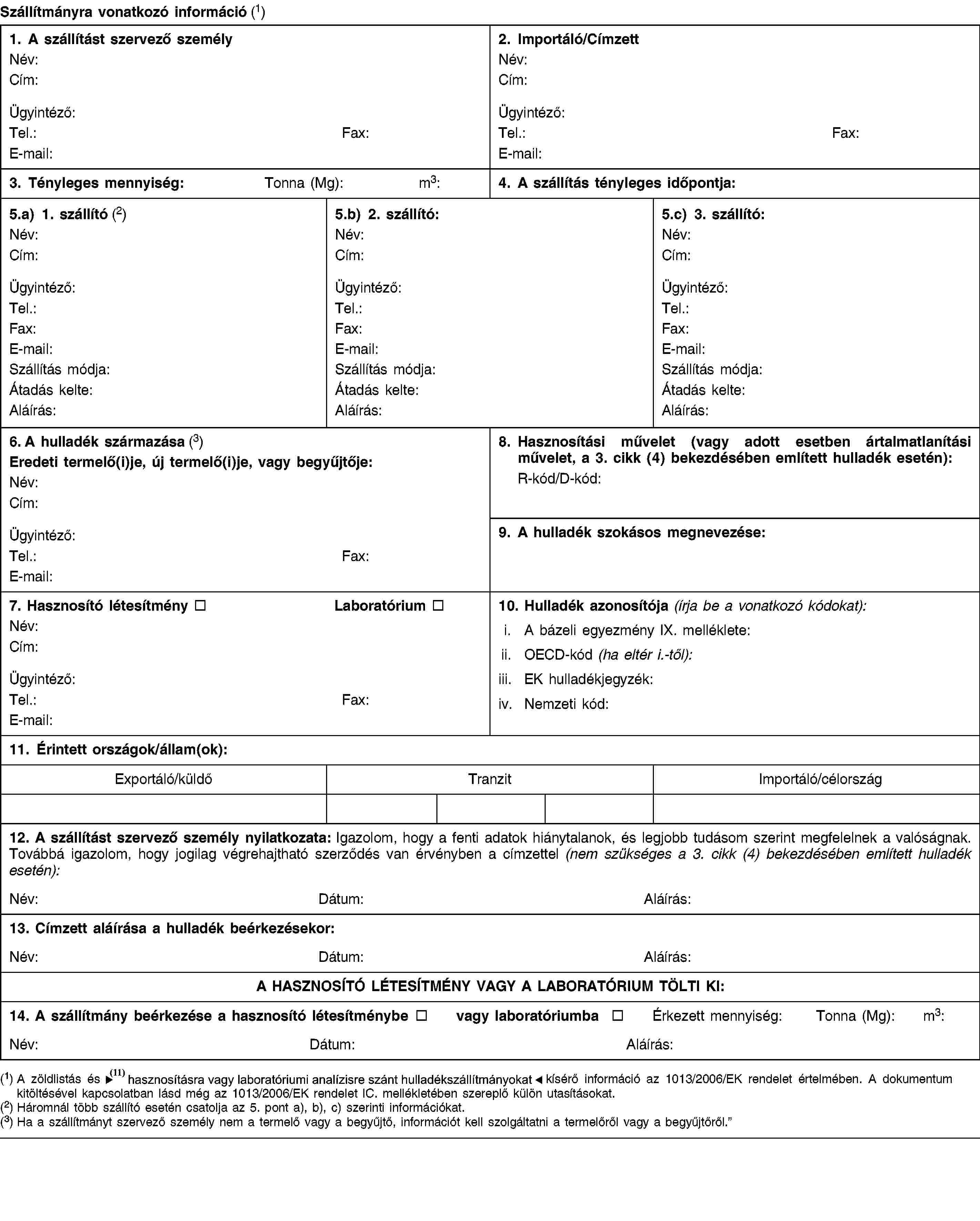 Kísérő dokumentum az országhatárokon keresztül történő hulladékszállításhoz