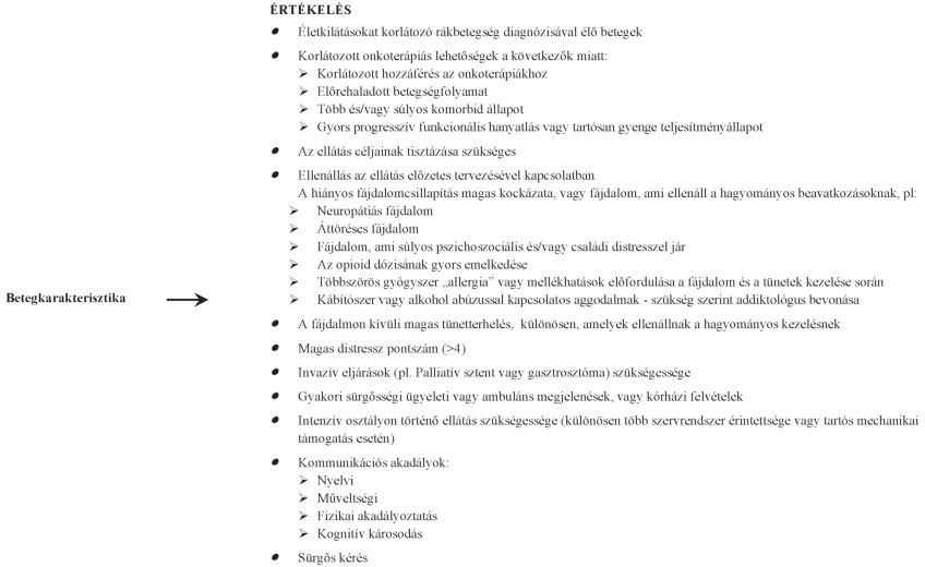 I. palliatív szemléletű ellátás (pl. alapellátás, általános profilú kórházi ellátás keretében).