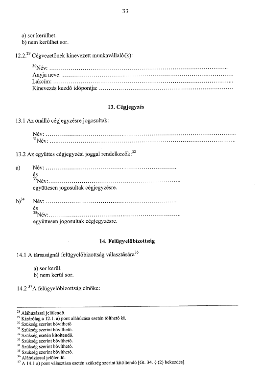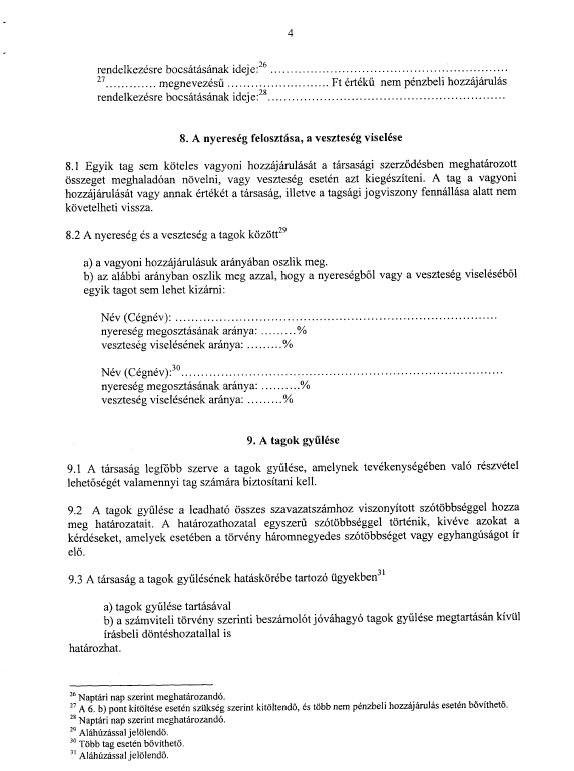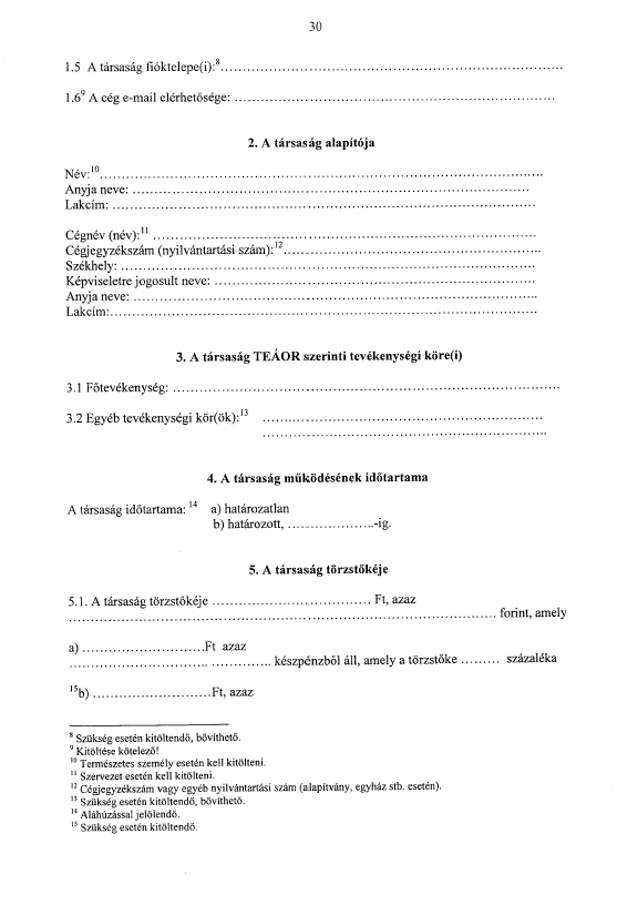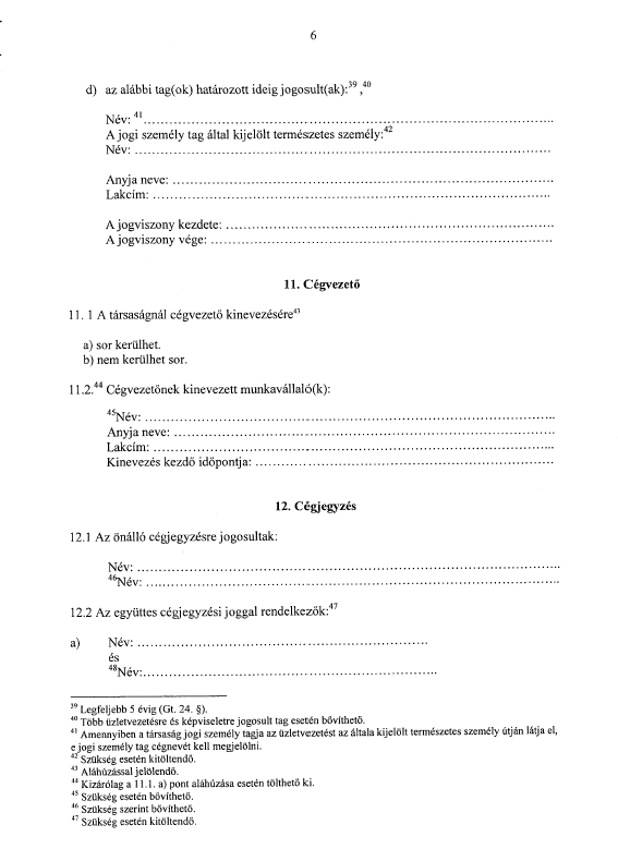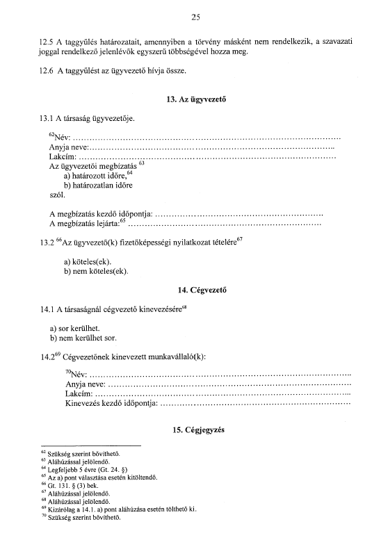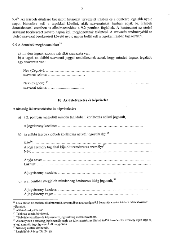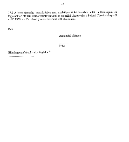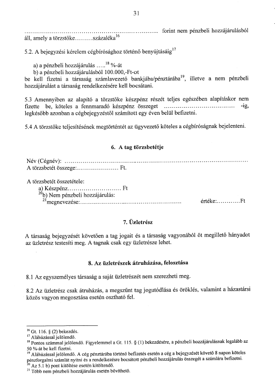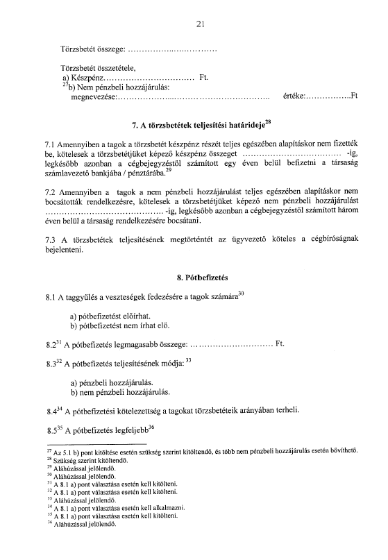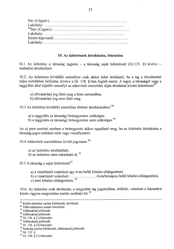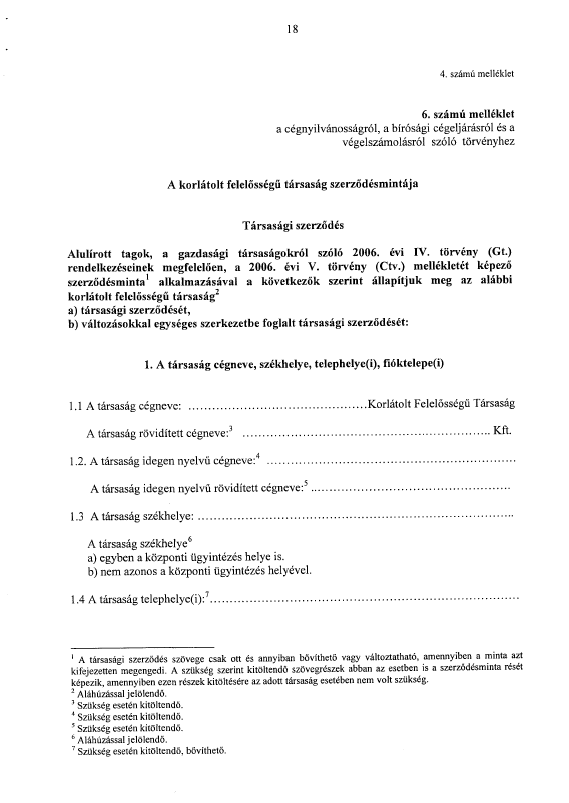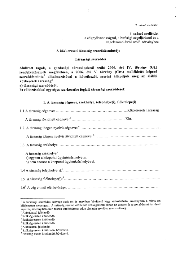 Amennyiben tehát a törvényi szerződésmintából elhagynak, vagy hozzátesznek szövegrészt, a szerződés nem tekinthető szerződésmintának . Ebben az esetben - abból az okból, hogy a csatolt szerződés nem felel meg a törvényi szerződésminta által támasztott követelményeknek - nincs helye a cégbejegyzési kérelem elutasításának, hanem a cégbíróság a kérelmet automatikusan az egyedi szerződésekre vonatkozó szabályok szerint bírálja el.