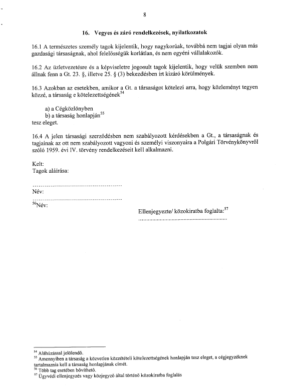 "9. § (1) A cégjegyzésre jogosultnak a cég nevében olyan módon, illetve formában kell aláírnia, ahogyan azt a hiteles cégaláírási nyilatkozat (a közjegyzői aláírás-hitelesítéssel ellátott címpéldány), illetve az ügyvéd által ellenjegyzett aláírás-minta tartalmazza.