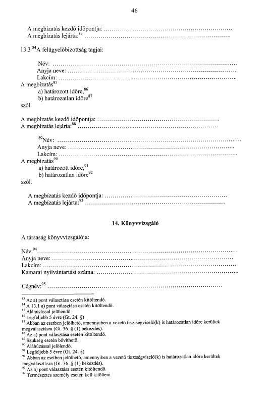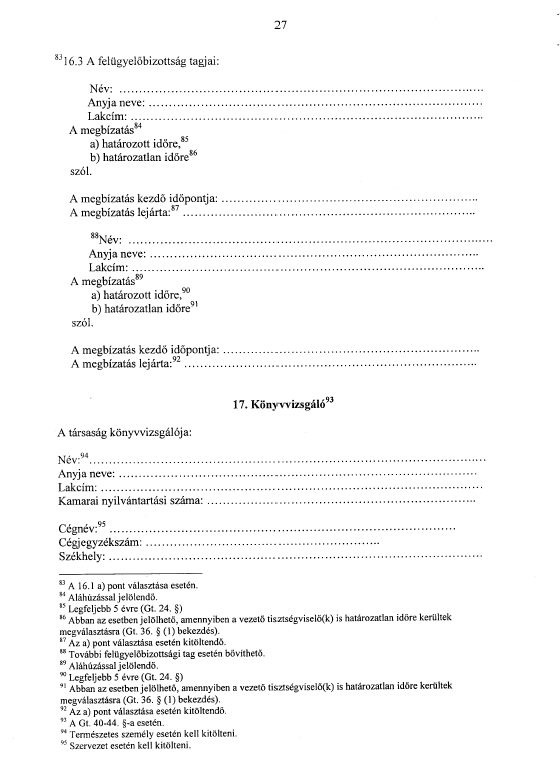 Fontos kiemelni, hogy a Gt-nek a társasági szerződés kötelező tartalmára vonatkozó rendelkezéseinek módosításával a korábbi szabályozásnak megfelelően nem kötelező tartalmi eleme a tagok, vezető tisztségviselők, felügyelőbizottsági tagok "anyja nevének" megjelölése. A bejegyzési, változásbejegyzési kérelmen a jövőben is fel kell tűntetni ezen adatokat, így a cégjegyzék tartalmazza ezen személyek "anyja nevét" is, azonban a társasági szerződést nem szükséges ezen adattal kiegészíteni.