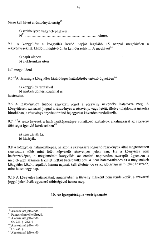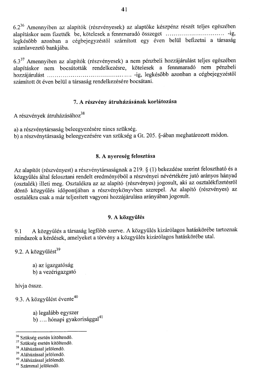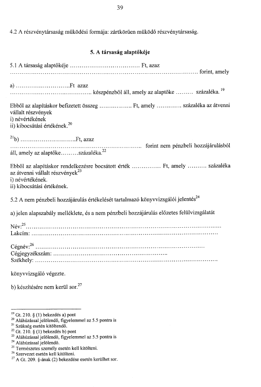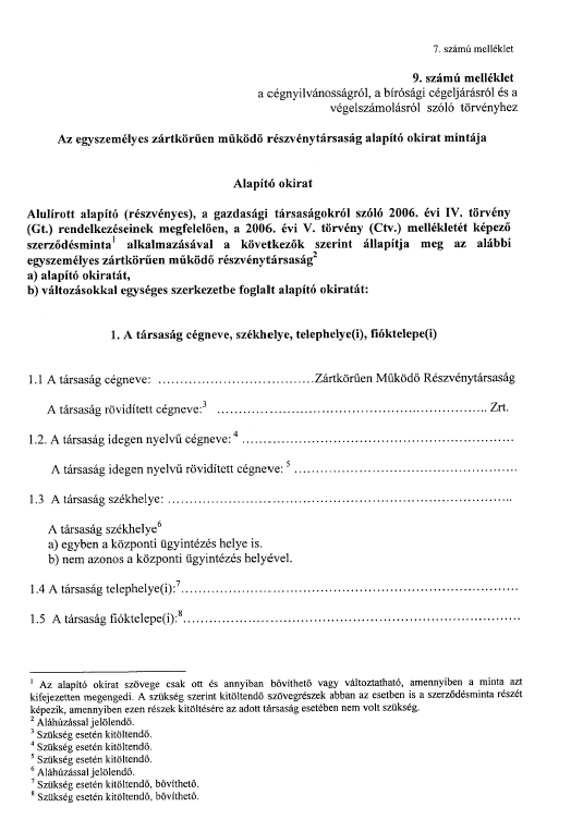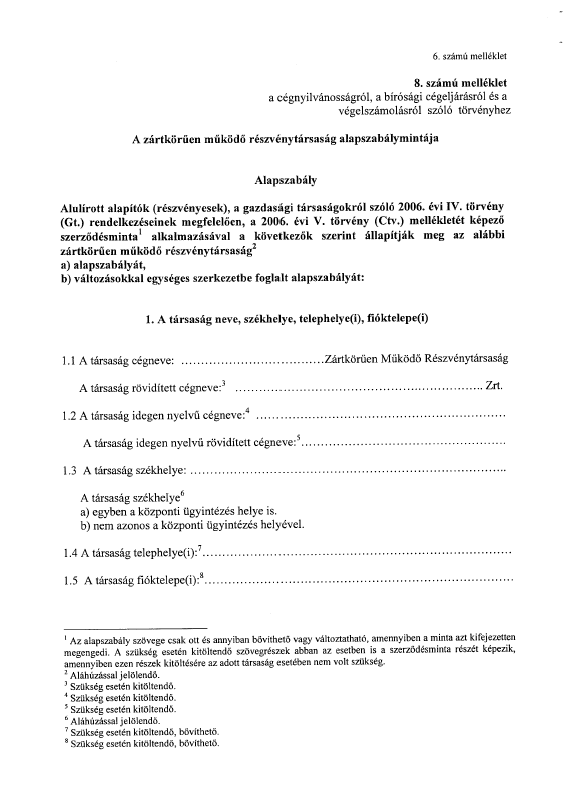 Éppen ezért a cégtörvény a jövőben tartalmazni fogja az egy és a többszemélyes zártkörűen működő részvénytársaság alapszabály-mintáját is.