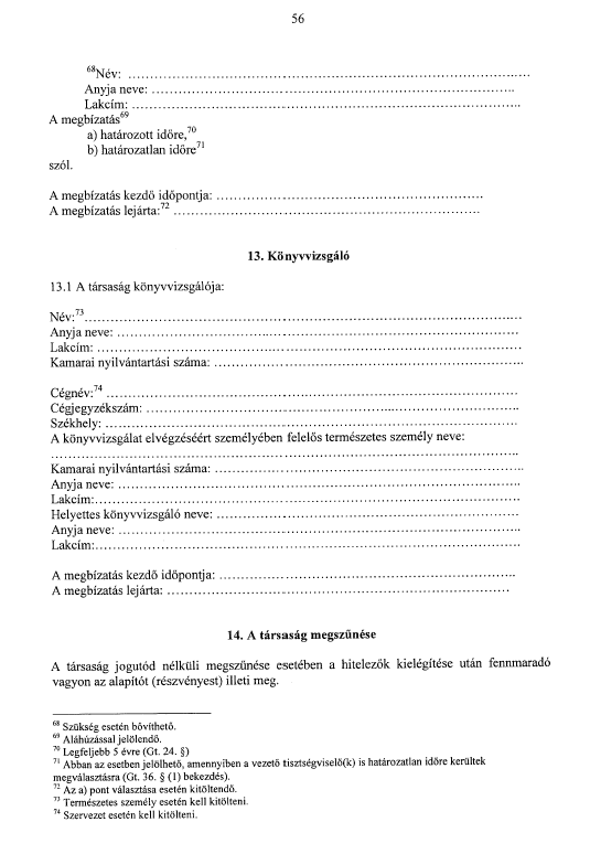 A Javaslat továbbá kimondja, hogy amennyiben a társasági szerzőség módosítására kizárólag azon okból kerülne sor, mert a szerződés általános hivatkozásként az 1997-es Gt-re utal, a módosítás formális megtörténtére nincs szükség. A Javaslat 31. §-a (2) bekezdésének értelmében a létesítő okiratnak nem kötelező tartalmi eleme a tagok, vezető tisztségviselők, felügyelőbizottsági tagok, könyvvizsgáló anyja neve. Erre figyelemmel, amennyiben csak ezen okból kellene a szerződést módosítani, arra nem lesz szükség.