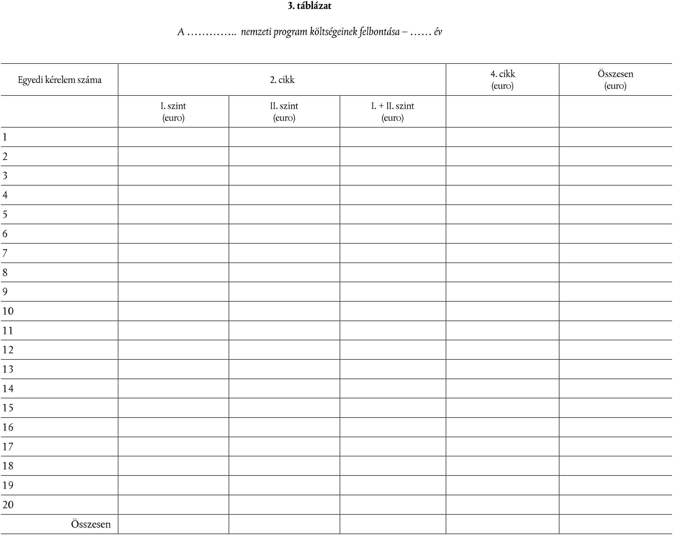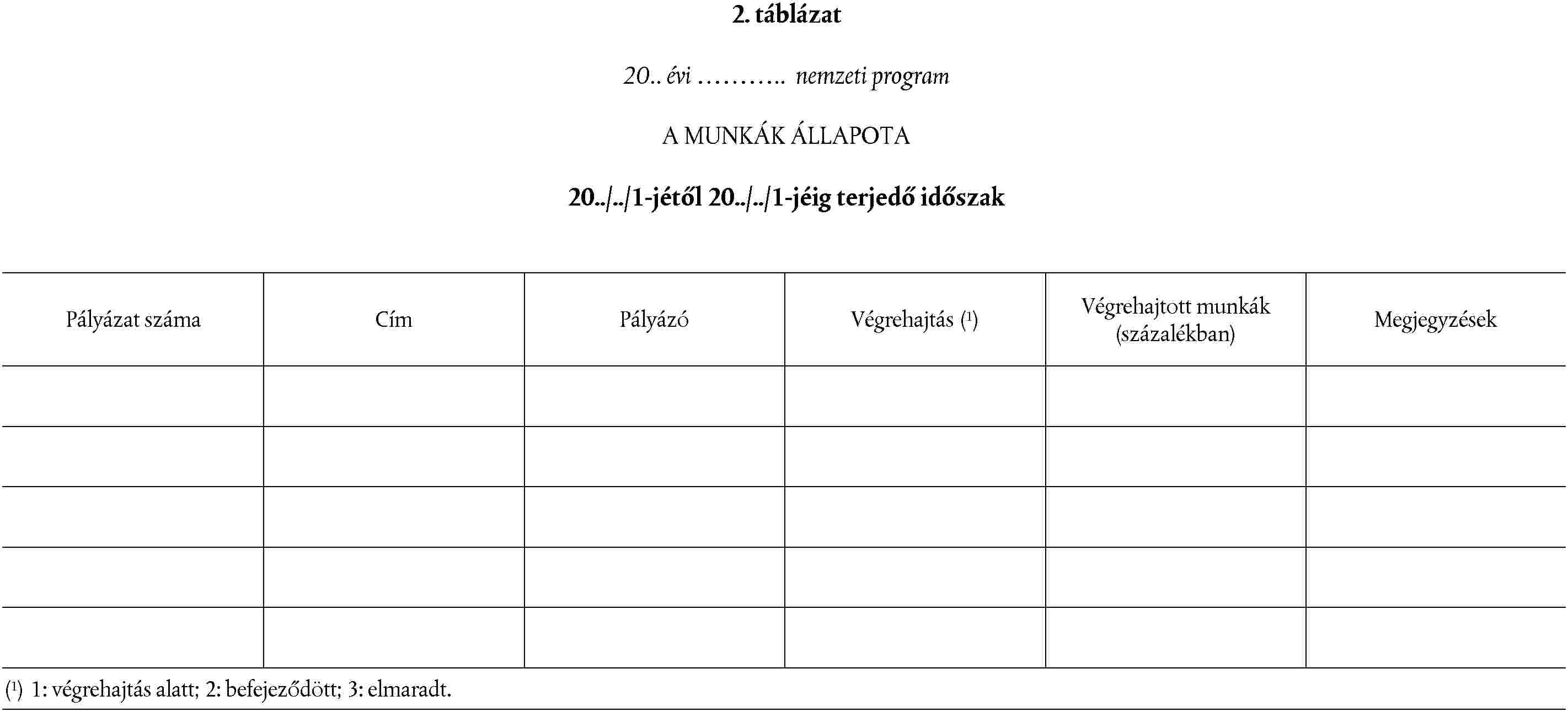 Felhasználandó a 2. táblázatban megadott formanyomtatvány.