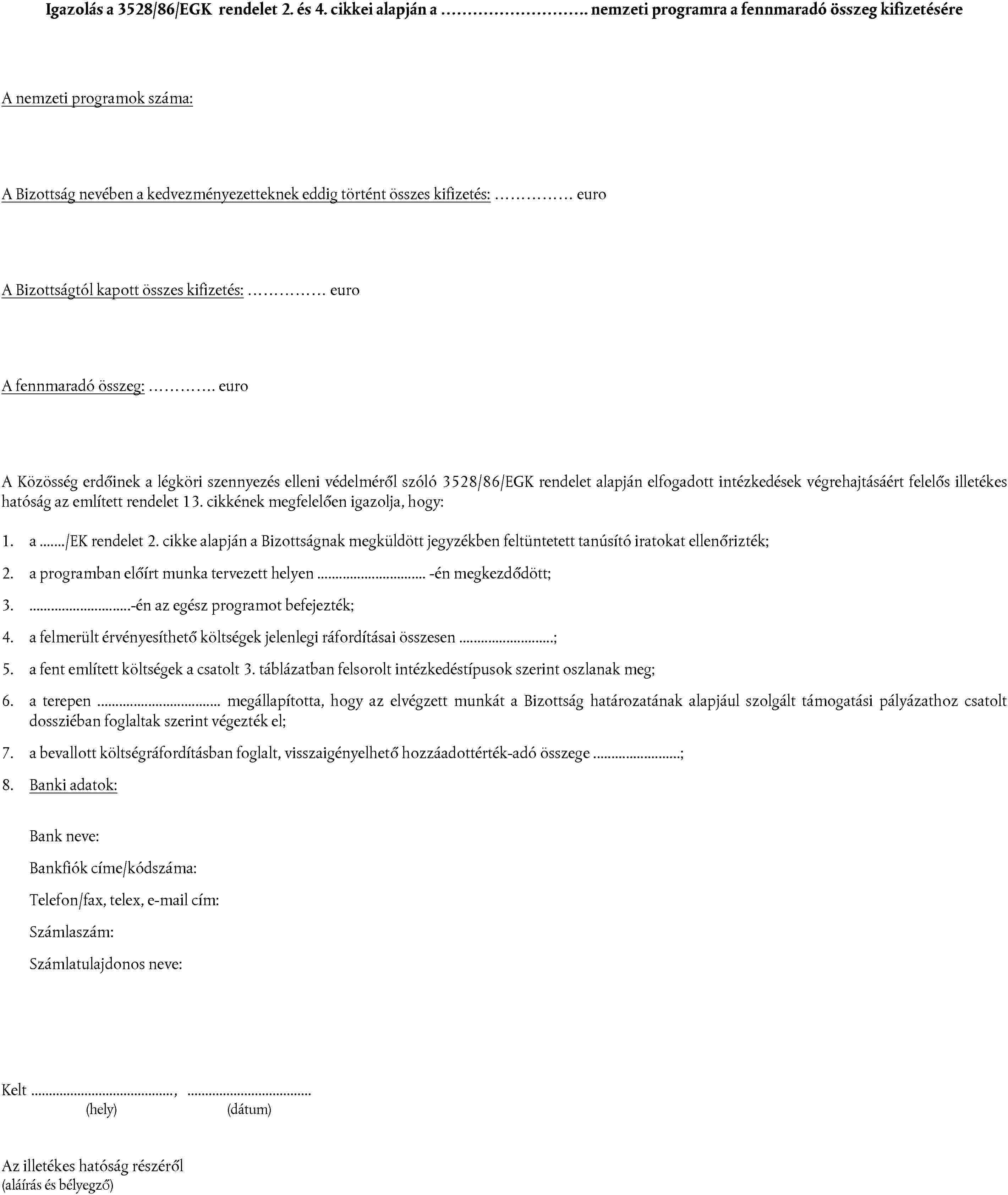 Felhasználandó az 1. táblázatban megadott formanyomtatvány.