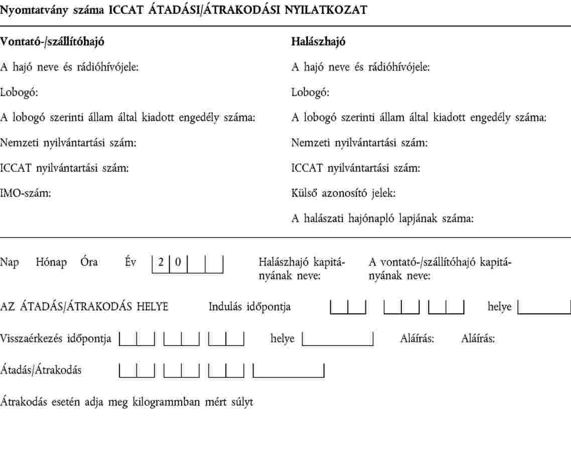 2. Az átadási/átrakodási nyilatkozat másodpéldányát az adott halászó hajó őrzi meg.