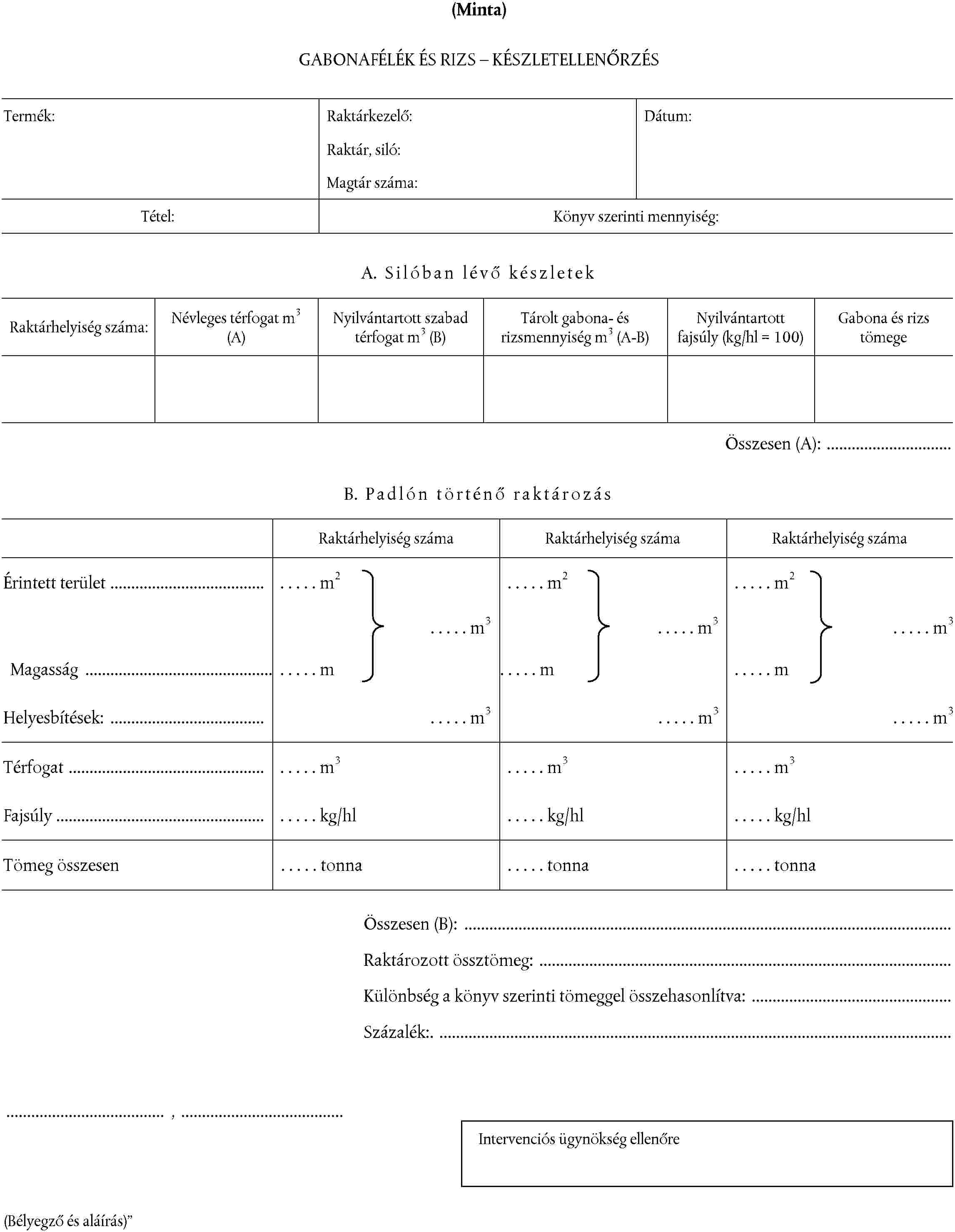 - a raktározási feltételek ellenőrzése, valamint a raktározás helyének, továbbá a gabonafélék és a rizs azonosságának az összehasonlítása a raktári nyilvántartásokkal,