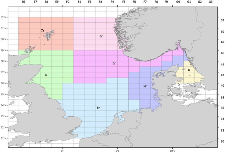 Homokiangolna-gazdálkodási terület | ICES statisztikai négyszögek |