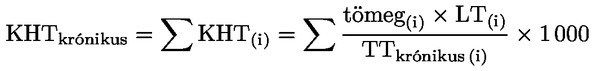 A kritikus hígítási térfogatot (KHTkrónikus) valamennyi (i) anyagra a következő egyenlet segítségével kell kiszámítani:
