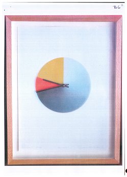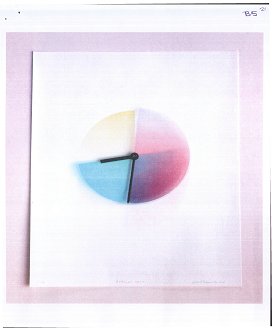 6. Paul Heimbach képzőművész a "Farbfolge II, 12 Stunden im 5-Minuten Takt" formatervezési minta alapján dolgozta ki a "Farbzeiger II" számlapot, amelynek megjelenése - fekete-fehérben - az alábbi: