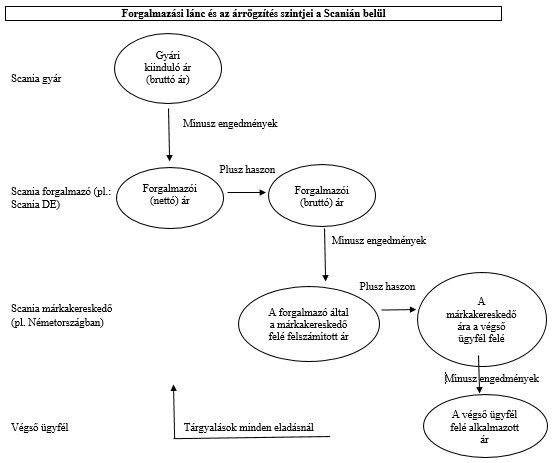 31. A megtámadott határozat (50) preambulumbekezdése tartalmazza a Scania árképzési mechanizmusa fenti 24-29. pontban ismertetett különböző szakaszainak ábráját. Ezt az ábrát a felperesek a közigazgatási eljárás során nyújtották be, és az a következőképpen néz ki: