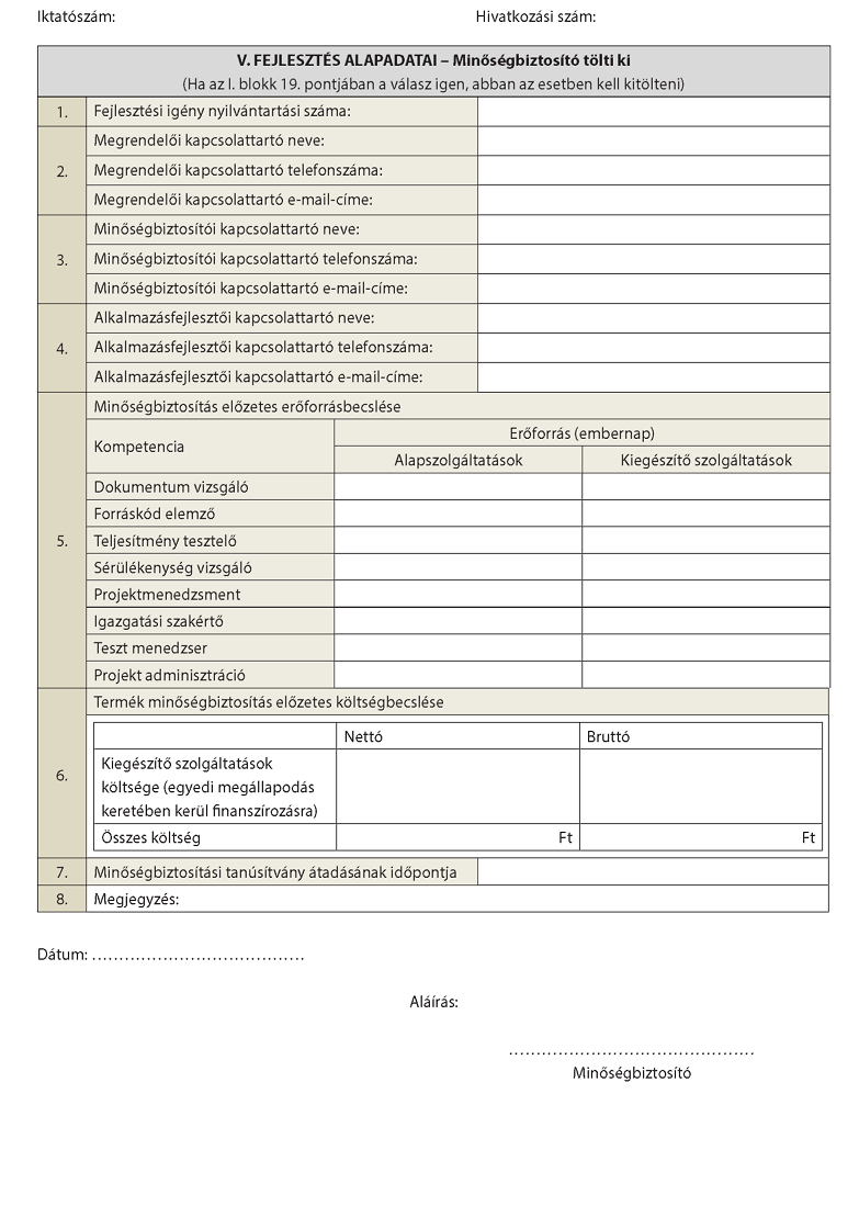 Alkalmazásfejlesztő aláírása: | …………………………………………….. vezető tisztségviselő |