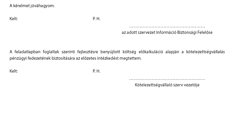 IT biztonsági megfelelést igazoló aláírása: | …………………………………………….. adott szervezet informatikai biztonsági felelőse |