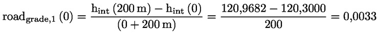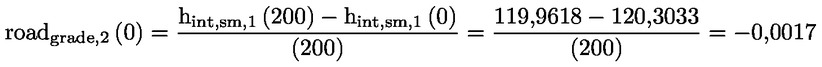 h int,sm,1(0) = hint (0) + road grade,1(0) = 120,3 + 0,0033 ≈ 120,3033 m
