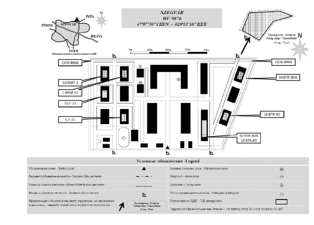 Tisztelt Hölgyeim és Uraim! Üdvözlöm Önöket, .............................................................................................................................................. vagyok, a Magyar Honvédség................................................................................. alakulatának és egyben az Önök által ellenőrzésre kijelölt "Bejelentett hely" parancsnoka (az alakulat parancsnoki állományából jelenlévő személyek bemutatása). A bejelentett hely megnevezése (pl. Debrecen):.................................................................................................................... A bejelentett hely száma (pl. HU-O-015): Átadom Önöknek a "Bejelentett hely" vázlatát. A vázlaton jelölt koordináta azonosítási pont a laktanya főbejárata. A bejelentett helyen az alábbi ellenőrzési objektumok találhatók: 1. Alakulat megnevezése (pl. MH Bocskai István 11. Páncélozott Hajdúdandár):...................................................................... Azonosító kódja (pl. HU0048 OOV4):................................................................................................................................. Az ellenőrzési objektum parancsnoka:................................................................................................................................. 2. Alakulat megnevezése (pl. MH Bornemissza Gergely 2. Felderítőezred):............................................................................. Azonosító kódja (pl. HU0354 OOV5):................................................................................................................................. Az ellenőrzési objektum parancsnoka:................................................................................................................................. A bejelentett helyen lévő katonai alakulatok összesített létszáma:........................................................................................... (Nem csak a CFE adattárban szereplő alakulatok!) A bejelentett hely területén az alábbi - közös használatú területeken elhelyezett -, a CFE Szerződés hatálybalépését megelőzően (1991 előtt) kiállított múzeumi tárgyak, kiképzési vagy egyéb célra kivont eszközök találhatók. | |||