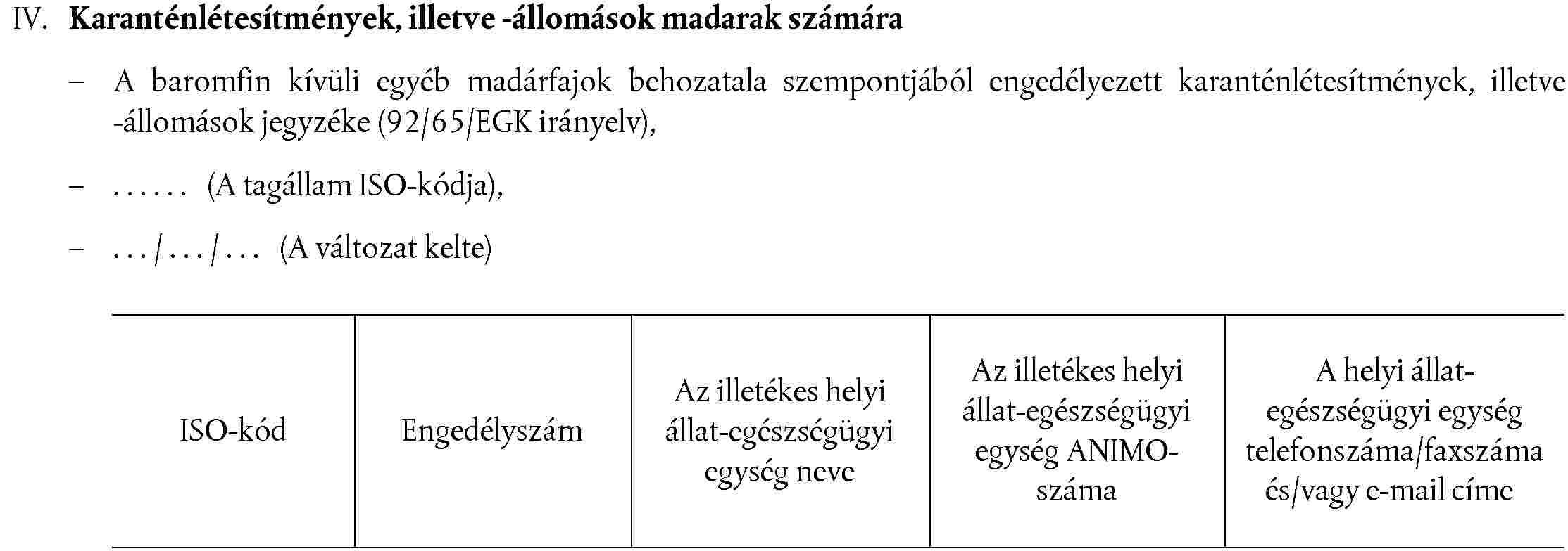 4. A 92/65/EGK irányelv 18. cikke (1) bekezdésének negyedik francia bekezdésével és a 2000/666/EK határozattal összhangban madarak számára engedélyezett karanténlétesítmények, illetve -állomások.