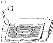 69. A korábbi formatervezési minta által tett összbenyomásra rátérve, azt alapvetően a fenti 63. pontban felsorolt vonások határozzák meg. Az egység központi része ugyanis összhatásában négyszögletű, felső részének felülete a használó irányába lejt, és csuklós hangszóróval rendelkezik. A hangszóró ugyanúgy négyszögletes formájú, és szintén kártyaolvasót tartalmaz, amelynek a külső megjelenése azonos. A hangszóró alatt található panel - mind különböző elemei formáját, mind azok elrendezését illetően - megfelel a vitatott formatervezési mintán ugyanott elhelyezett panelnek. Az utóbbihoz hasonlóan a korábbi formatervezési mintát is ellátták bal oldalra helyezett, száras mikrofonnal.