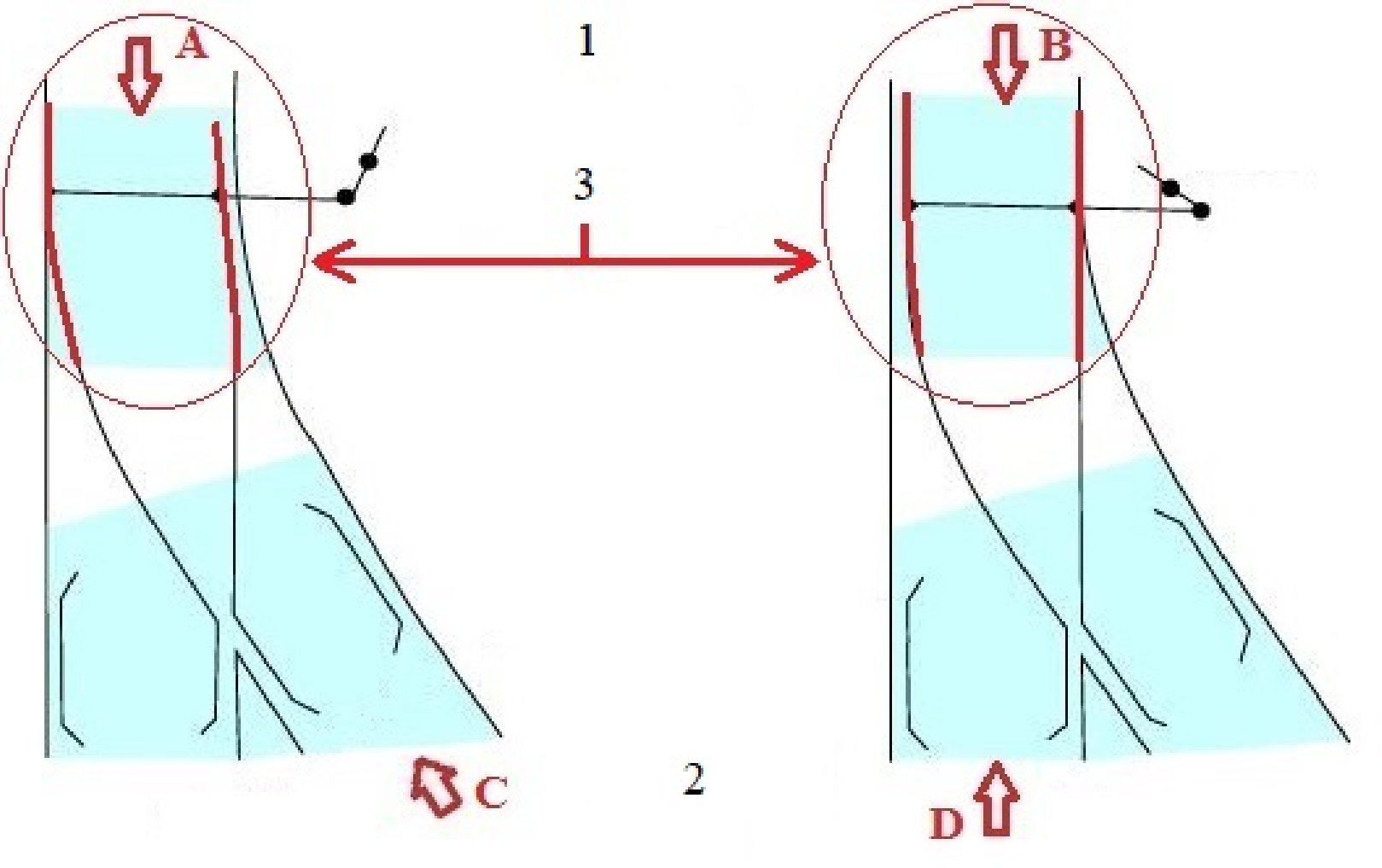 - A váltó csúcsától a váltó gyök felé való A és B típus szerinti áthaladás esetén az elmozdulás nem haladhatja meg a 4,0 mm-t.