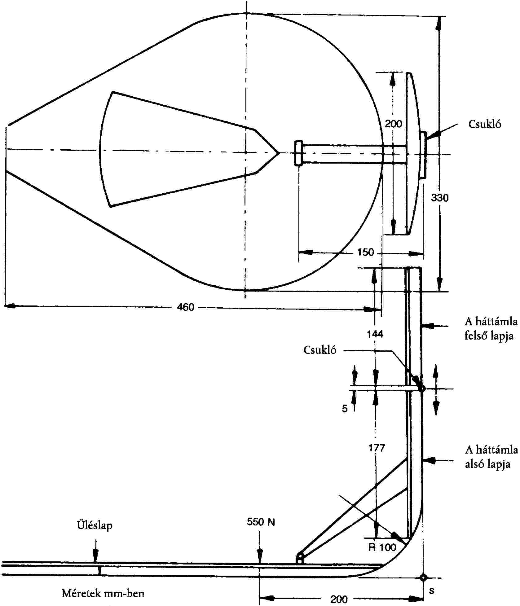 - a védőszerkezetben az ülés helyzete és lényeges méretei, továbbá a védőszerkezet elhelyezése, és a traktor olyan, hogy a szabad tér a vizsgálat során a megváltozott alakú szerkezet védelmén belül marad.
